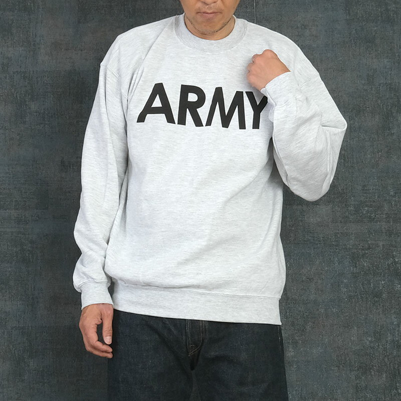 GILDAN ギルダン ULTRA BLEND クルーネック スウェットシャツ ARMYロゴ デッドストック トレーナー ルームウェア 部屋着 ロングスリーブ 長袖 トップス スポーツ トレーニング カジュアル スエット プリント 裏起毛 グレー ウルトラブレンド 男性 メンズ 未使用品