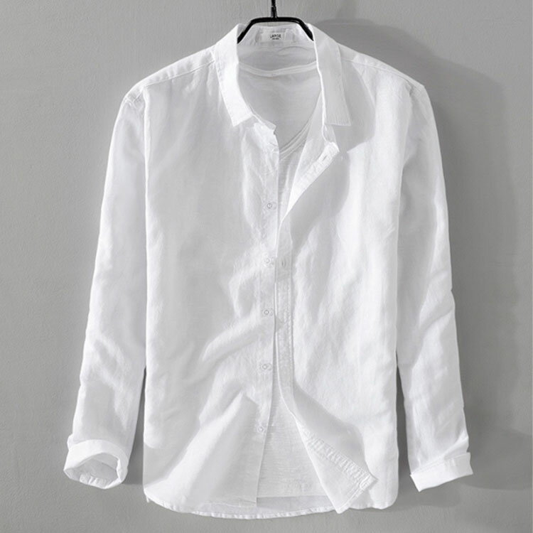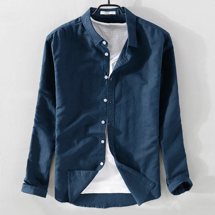リネンシャツ メンズ シャツ トップス 綿麻シャツ カジュアルシャツ 開襟 長袖 無地 ワイシャツ 薄手 夏春秋 ナチュラル 大きいサイズ メンズファッション