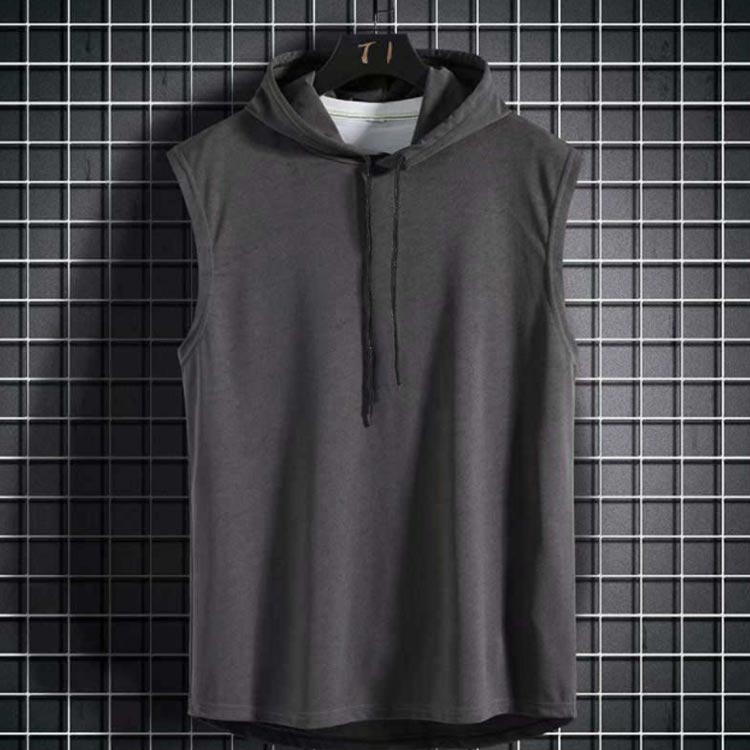 メンズ 部屋着 パーカー トレーニングウェア 無地 タンクトップ フード付き ストレッチ性 ベスト ノースリーブ スポーツ ビッグシルエット 夏物 袖なし 吸汗速乾 カットソー 筋トレ 日常着 カジュアル