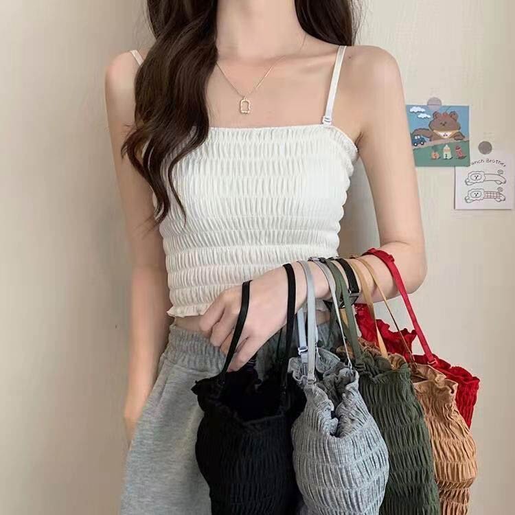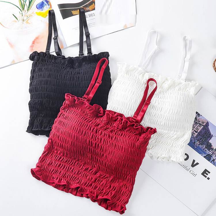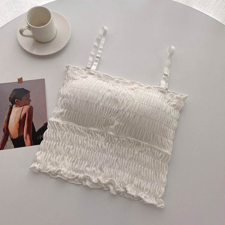 ブラトップ レディース キャミソール シャーリング 部屋着 プリーツ ブラキャミ インナー 可愛い お洒落 カップ付き キレイめ ショート丈 肩紐調節可 フェミニン レイヤード風 チューブトップ