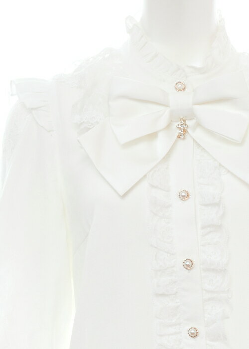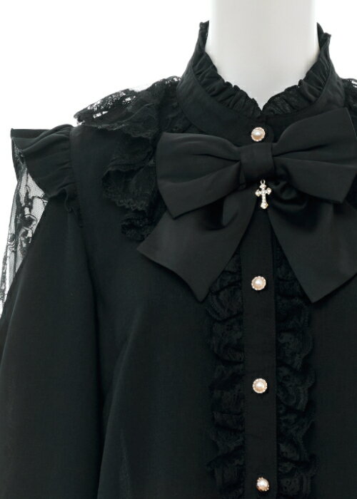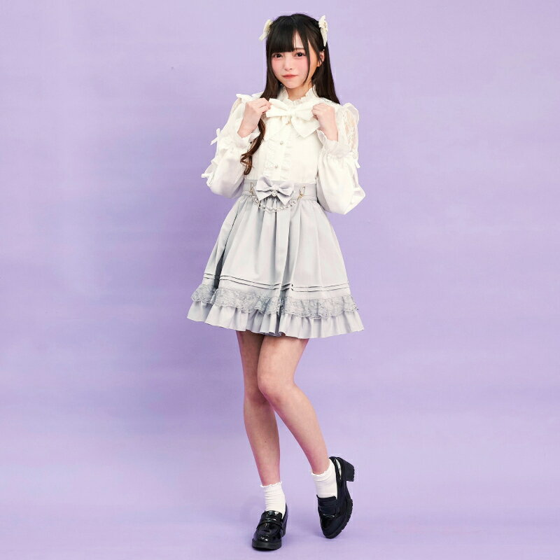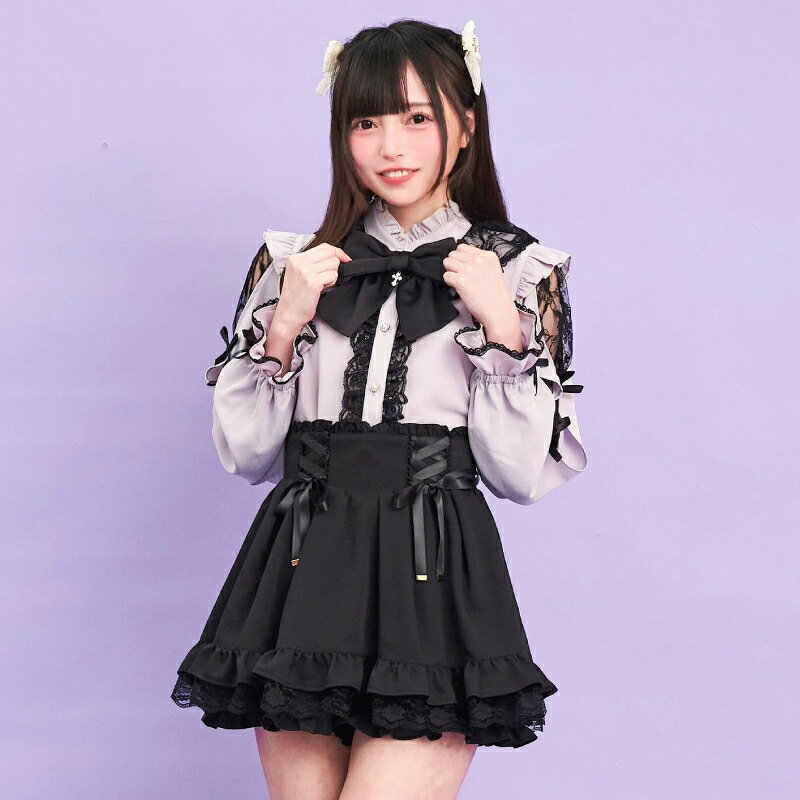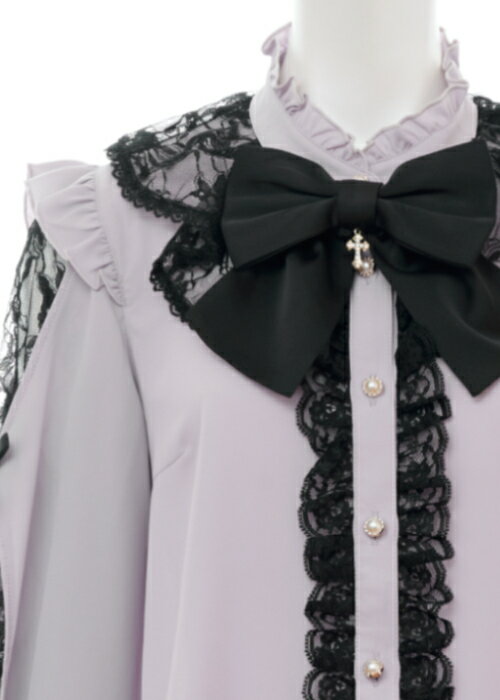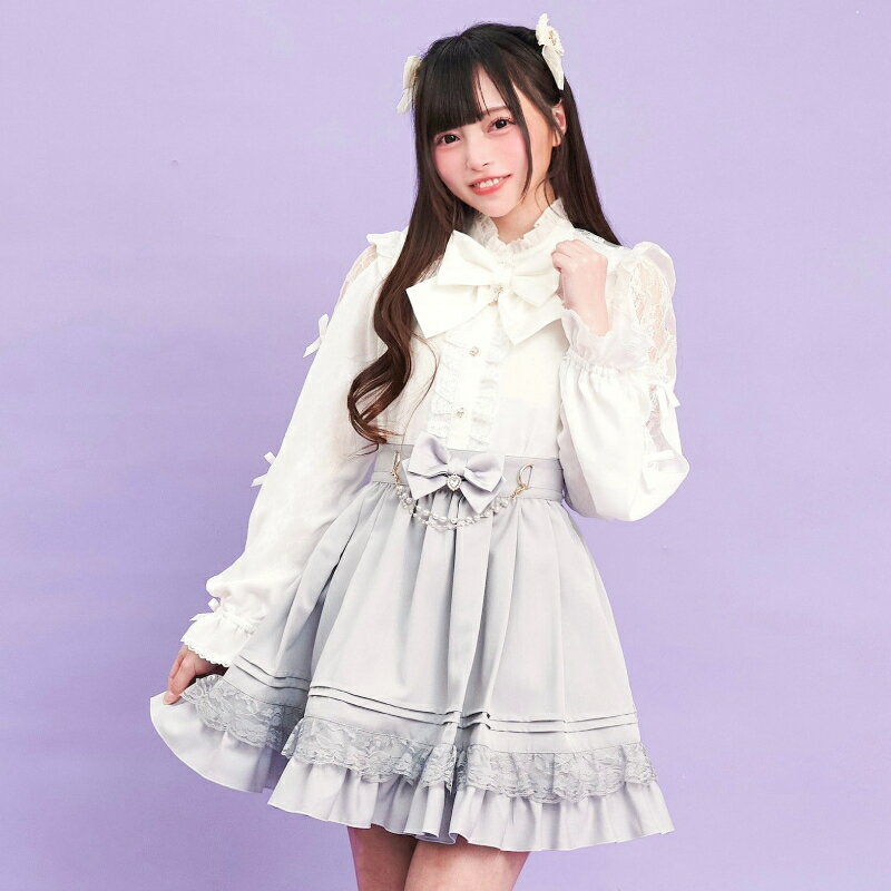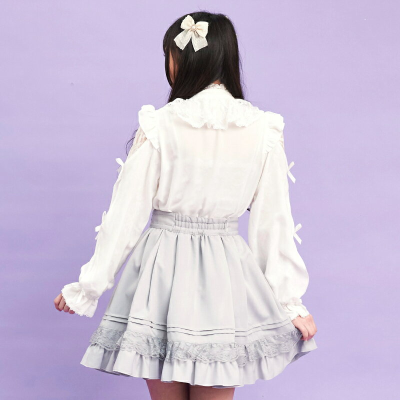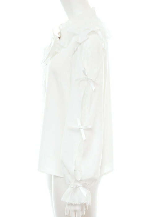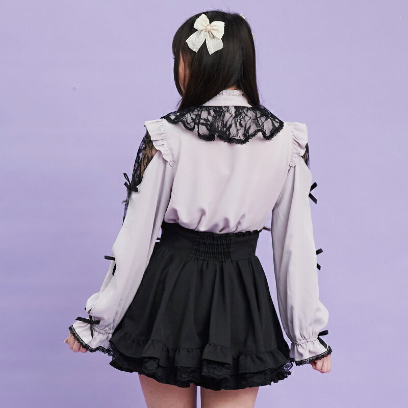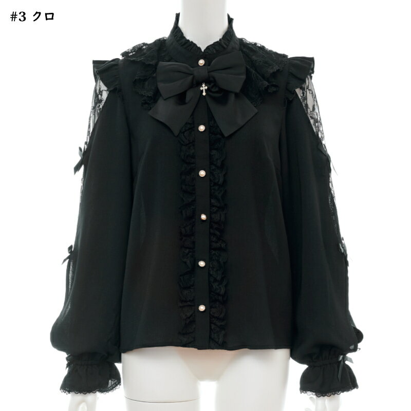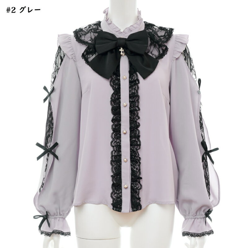 袖スリットレースラッフルブラウス4/2 12:00 販売スタートsecrethoney シークレットハニー シーハニ 量産型 レディース ガーリー 長袖 ホワイト 白 グレー ブラック 黒