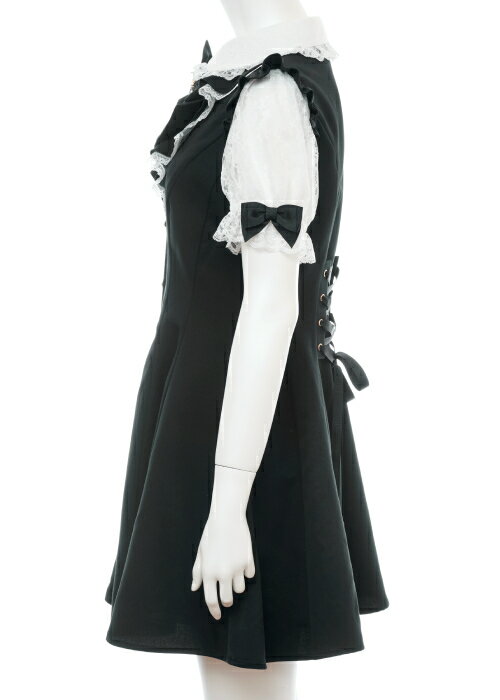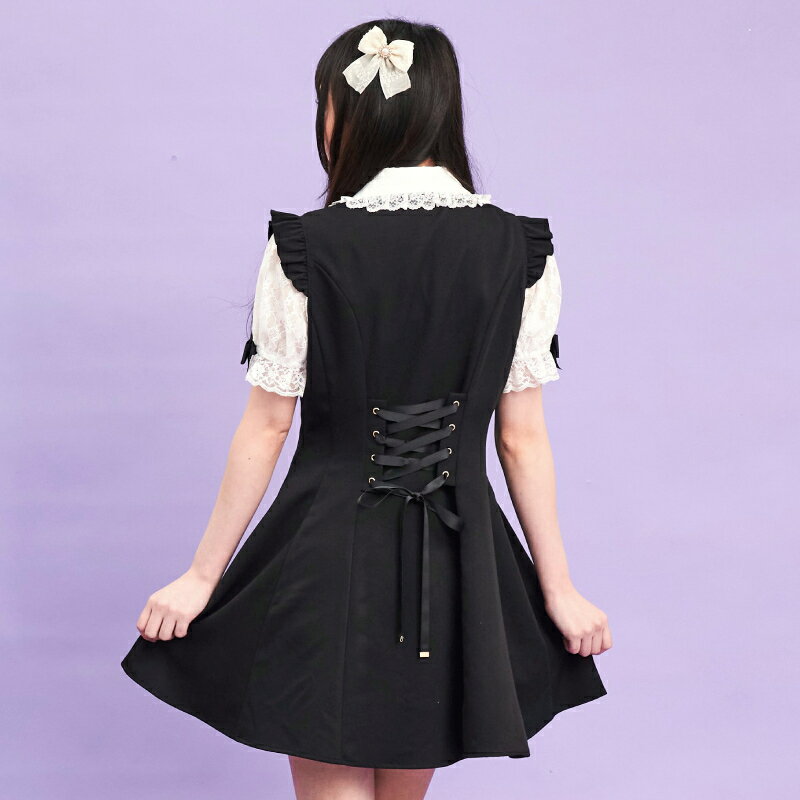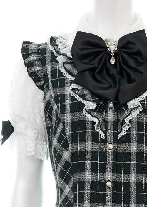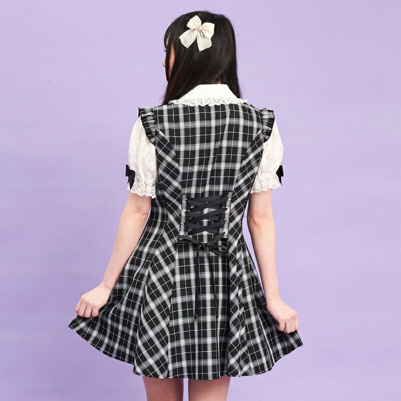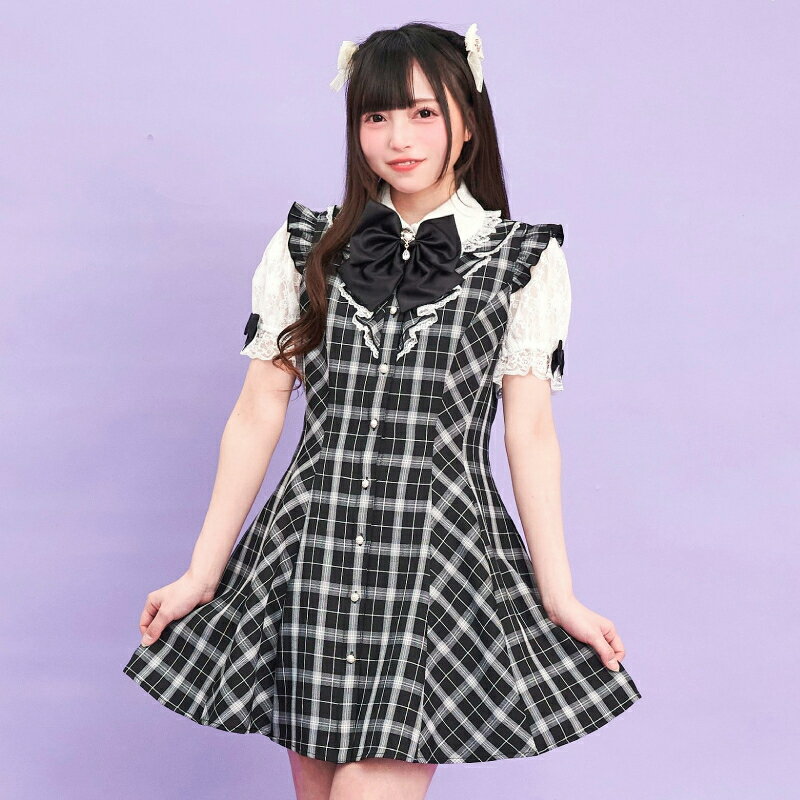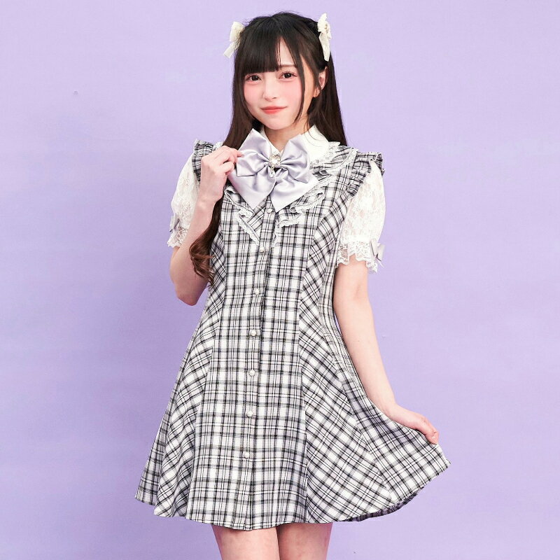 レース襟&レース袖ラッフルワンピース4/11 12:00 販売スタートsecrethoney シークレットハニー シーハニ 量産型 レディース ガーリー 無地 チェック グレー ブラック 黒