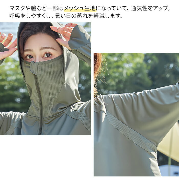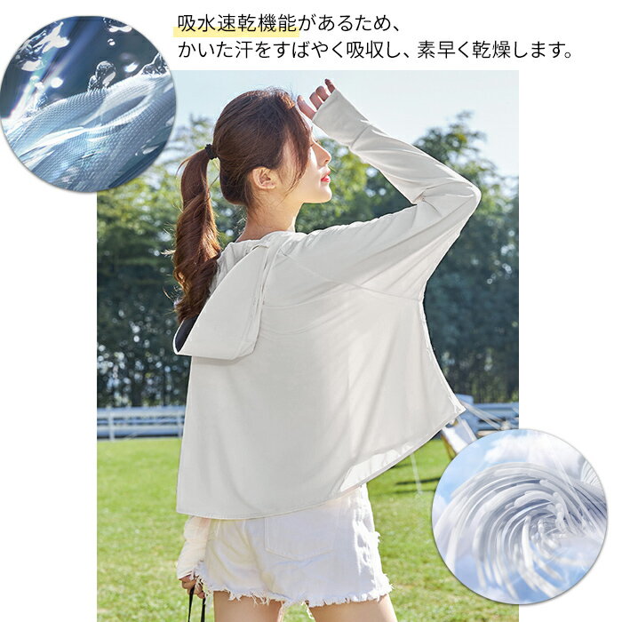 レディース 紫外線対策 ラッシュガード UV対策 接触冷感 吸汗速乾 日焼け止め UVカット 99.9% UPF50+ ひんやり 長袖 パーカー サンバイザー つば付き フード 薄手 ハイネック メッシュ 指穴 ポニテ スポーツ ジョギング レジャー 海 春 夏 秋 2070