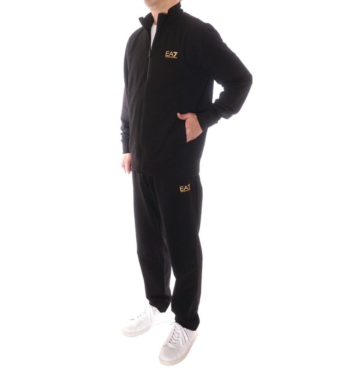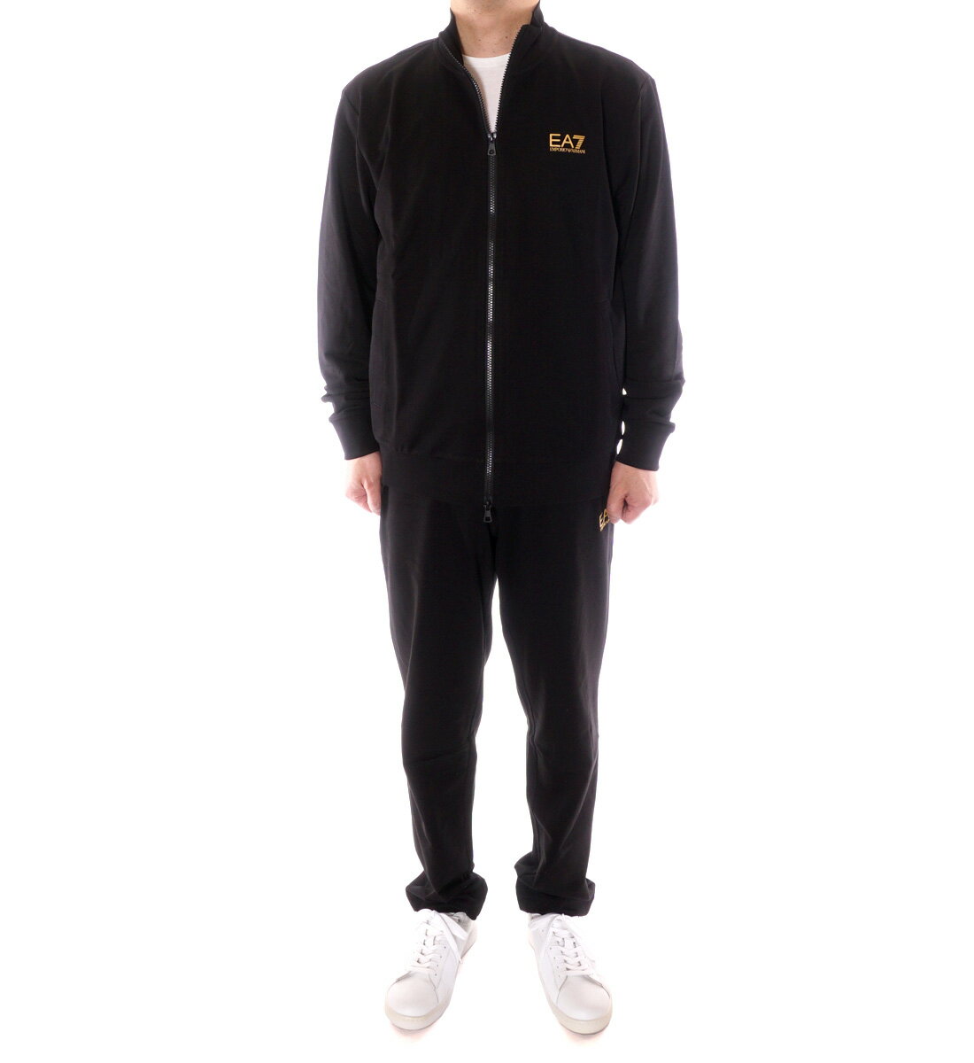 エンポリオ・アルマーニ EMPORIO ARMANI EA7 セットアップ ジップジャケット 上下 スウェットパンツ メンズ ブラック×ゴールド 8NPV61 PJVRZ MC004