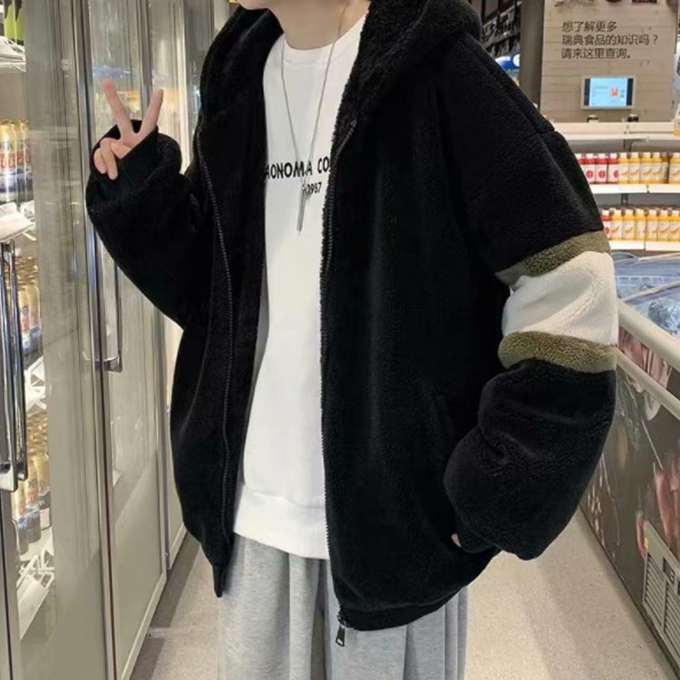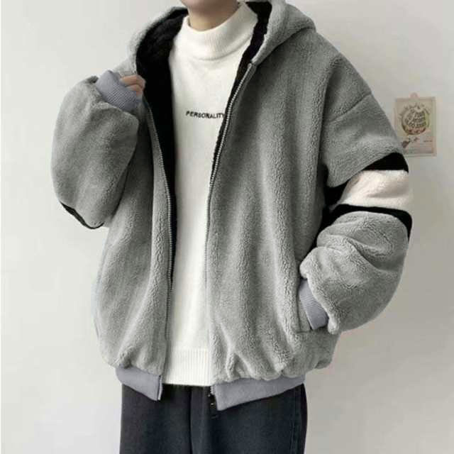 ふわふわ もこもこ ボアジャケット メンズ フード付き 防寒 アウター ボアコート ゆったり ボア ボア 秋 大きいサイズ コート カジュアル ジップアップパーカー ジャケット 暖かい 配色 おしゃれ 男女兼用 通学 通勤