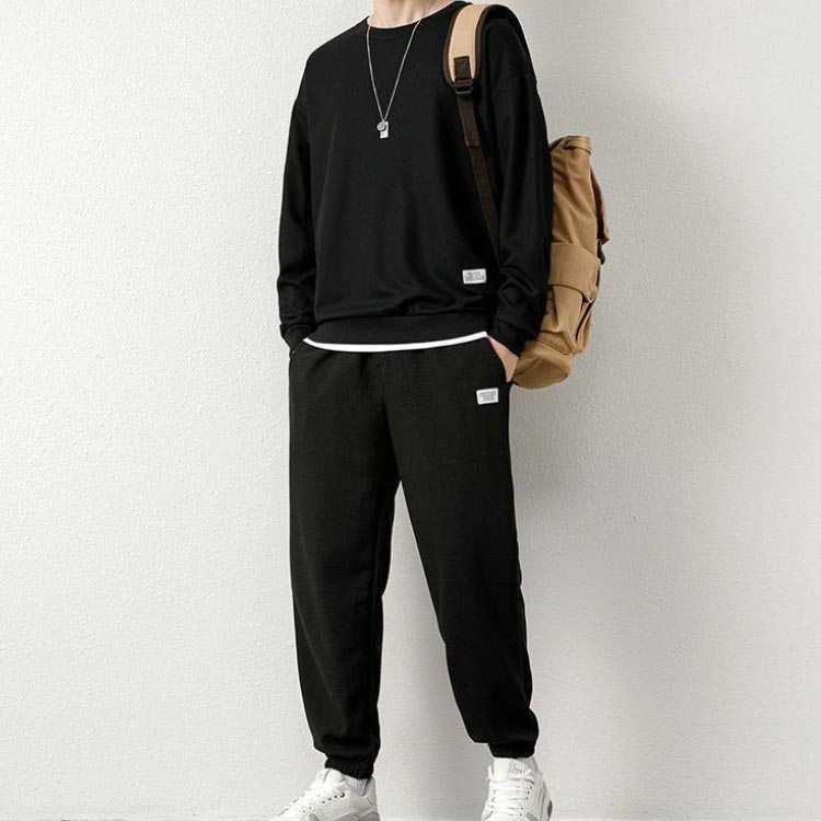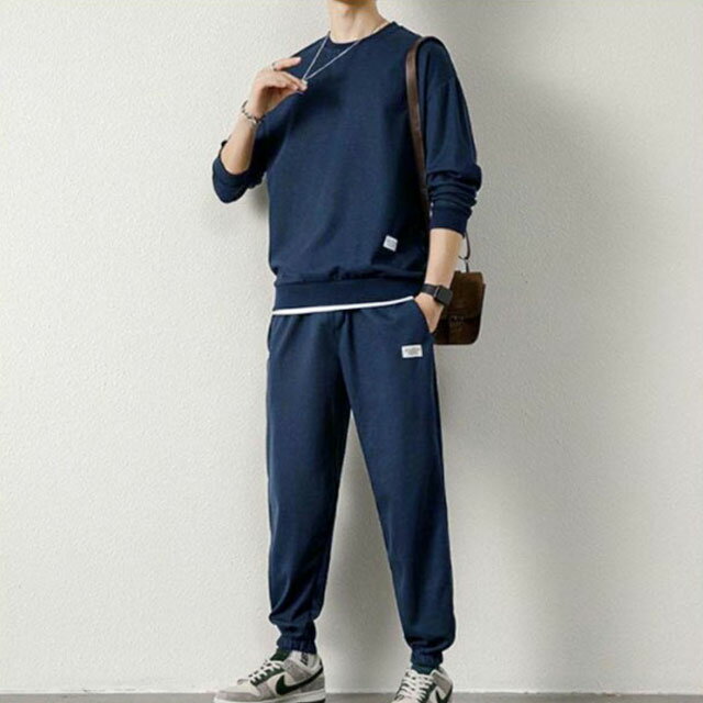 セットアップ トレーナー スウェット メンズ 上下セット ジャージ クルーネック ロングパンツ トップス 長袖 無地 重ね着風 スポーツウェア 春秋 運動着 春物 秋服 スエット 部屋着 セットアップ ジョガーパンツ 大きいサイズ