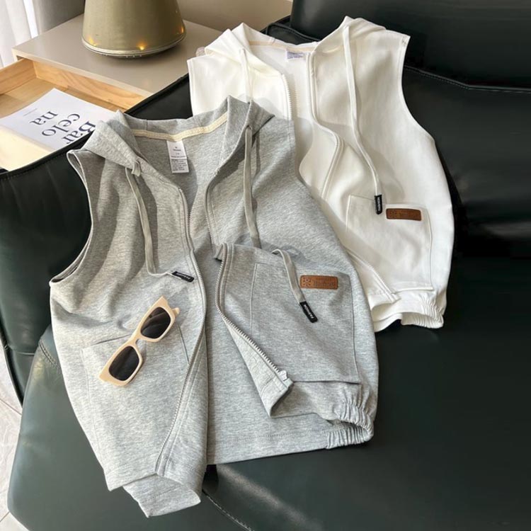 夏 ベスト レディース フード付き 羽織り カットソー ベスト 秋 ノースリーブ 春 レイヤード アウター トップス パーカー スウェット ジレ トップス お洒落 ゆったり カジュアル 体型カバー スポーツ