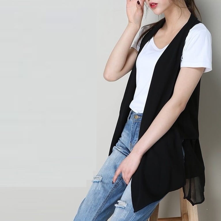 トップス ベスト ジレ 袖なし ノースリーブ Vネック 透け感 シアー フレア 襟付き かわいい 大人可愛い きれいめ シンプル カジュアル 大人 上品 お洒落 大人可愛い 大人女子 こなれ感 ラフ