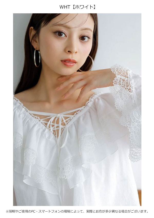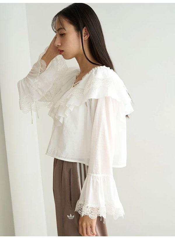 【新作10%OFF】【即納】 スナイデル SNIDEL トップス 25春夏 バリエレースブラウス ショート丈 長袖 透け感 フリル swfb251098