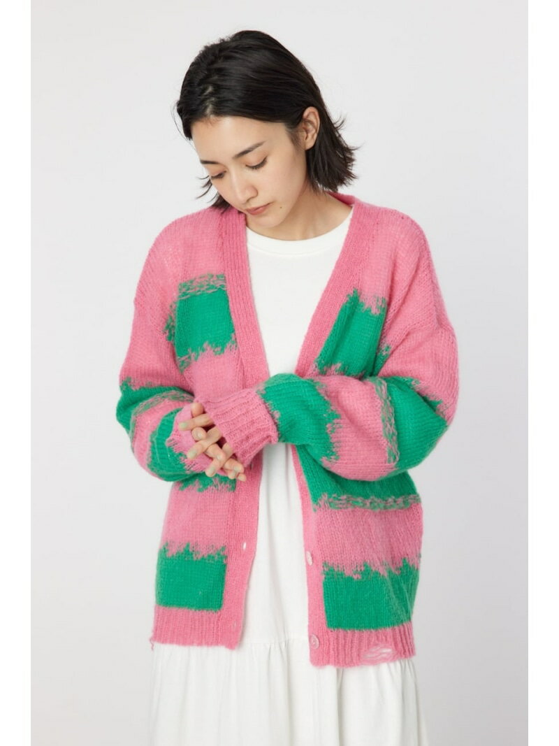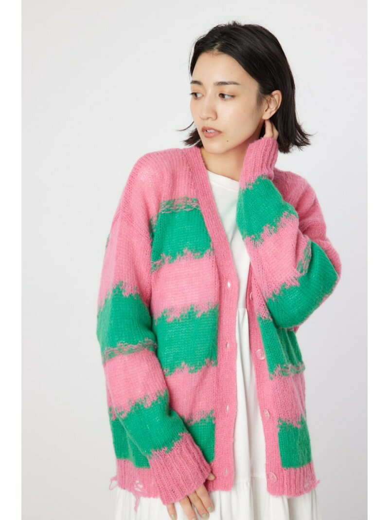 【SALE/20%OFF】Grunge Border Knit カーディガン RODEO CROWNS WIDE BOWL ロデオクラウンズワイドボウル トップス ニット ネイビー ピンク【RBA_E】【送料無料】[Rakuten Fashion]