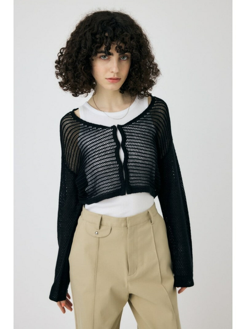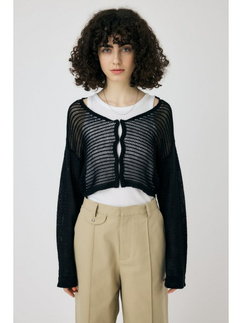 OPEN WORK KNIT カーディガン MOUSSY マウジー トップス カーディガン ホワイト ブラック【送料無料】[Rakuten Fashion]