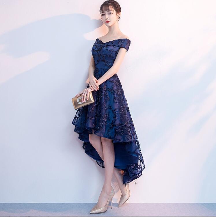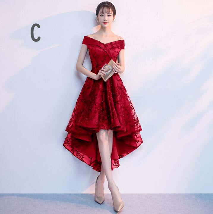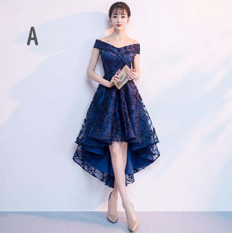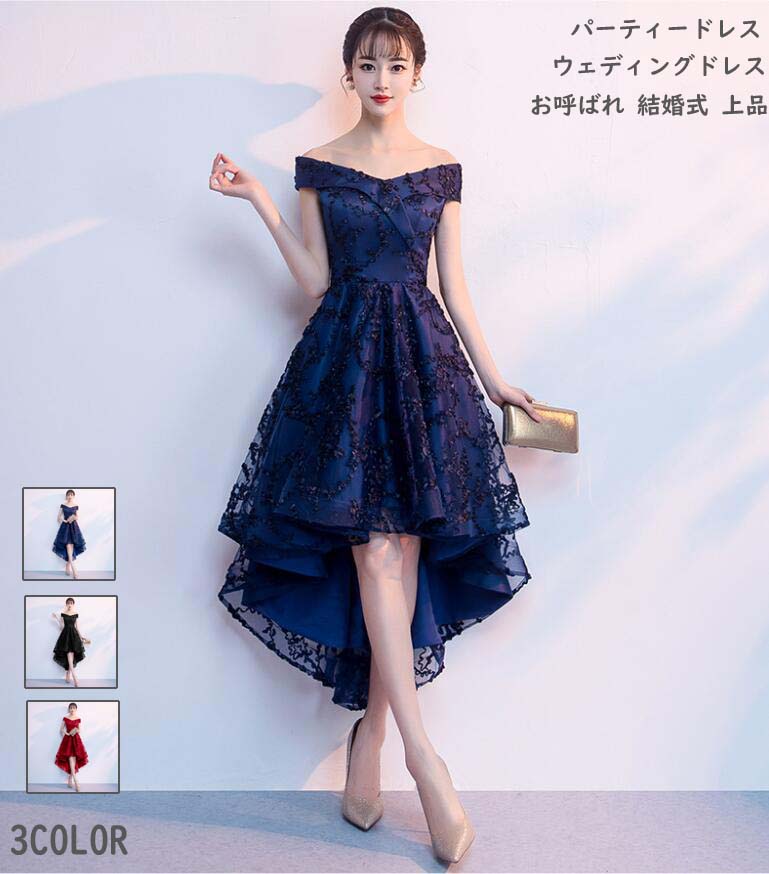 【送料無料】花嫁ドレス オフショルダー フィッシュテールドレス 前短後長 可愛い 上品 パーティードレス 結婚式 肩出し 着痩せ 編み上げ 袖なし カジュアル 発表会 同窓会 ワンピース 二次会 キレイめ レデイース 結婚式 ウエディングドレス 演奏会用ドレス 大人 ピアノ 3色