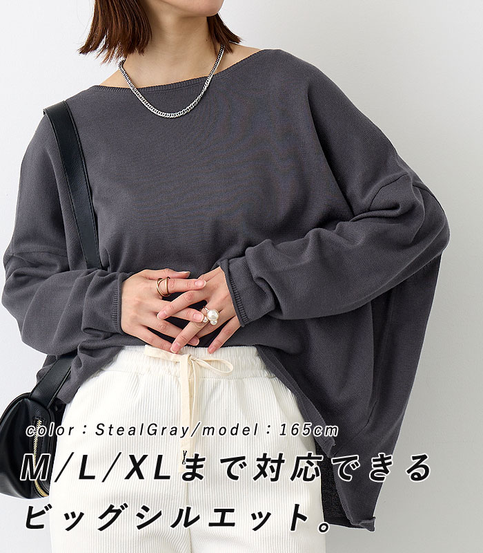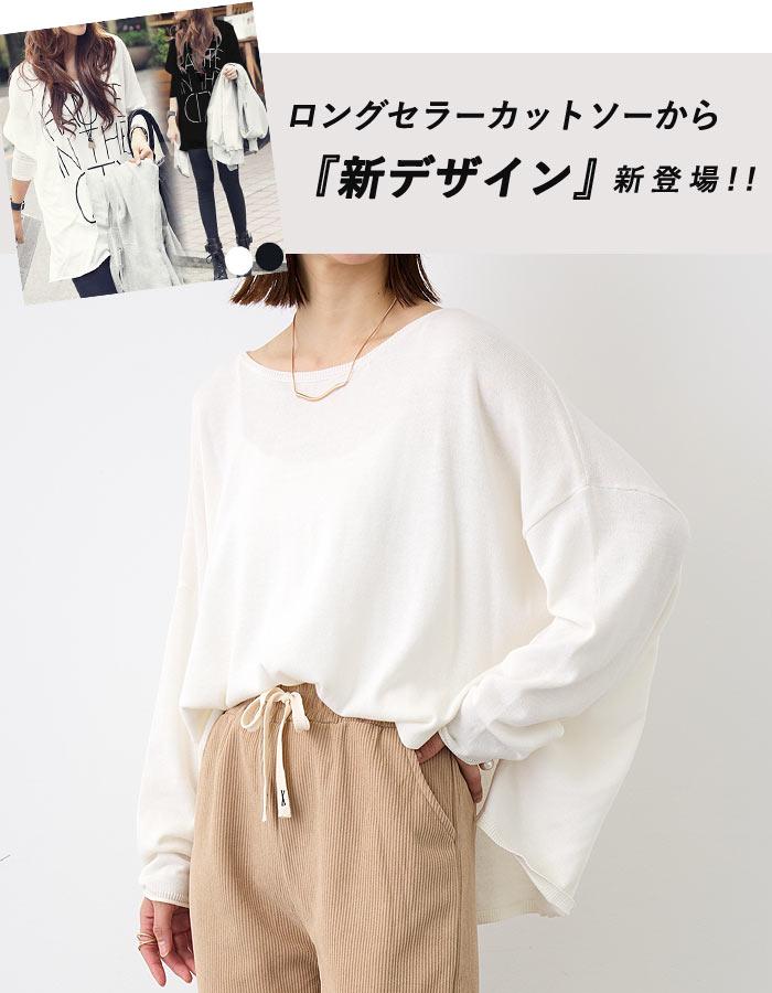 【2790円クーポンで!】 XL相当まで対応のゆったりワンサイズ♪【綿100%ニット×全10カラー!】【楽天1位】ニット レディース 薄手 ニットソー カットソー 大きいサイズ 無地 薄手ニット 重ね着 オーバーサイズ トップス 長袖 ロゴ おしゃれ 大きめ 体型カバー [郵2]^t1065^