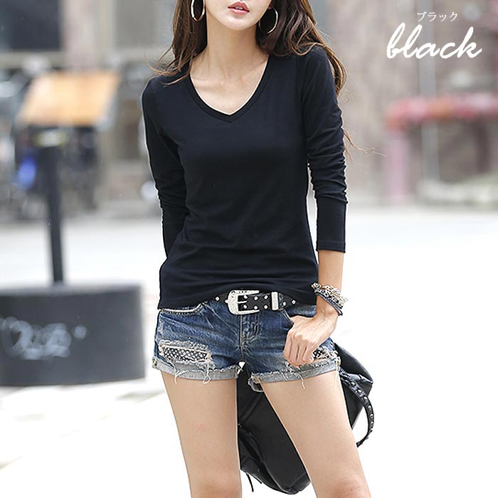 【楽天1位】トップス カットソー ロンt レディース vネック tシャツ 長袖 無地 シンプル 重ね着 レイヤード 紫外線対策 冷房対策 春 (送料無料)[郵1]^t291^