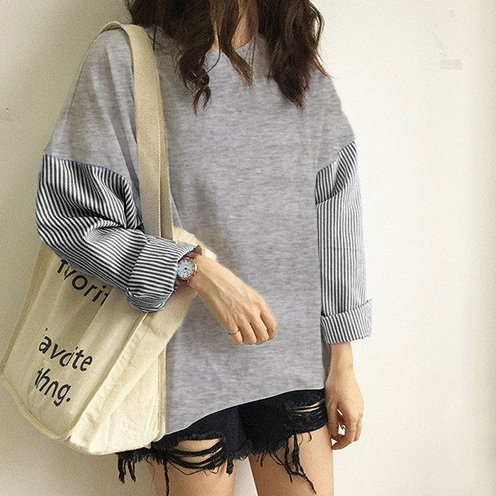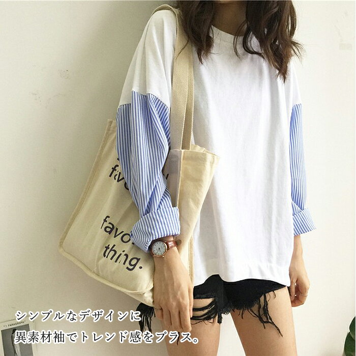 【楽天1位】カットソー レディース シャツ 薄手 袖 ストライプ トップス 切り替え 異素材 フリーサイズ おしゃれ 上品 30代 40代 春 (送料無料)[郵1.5]^t915^
