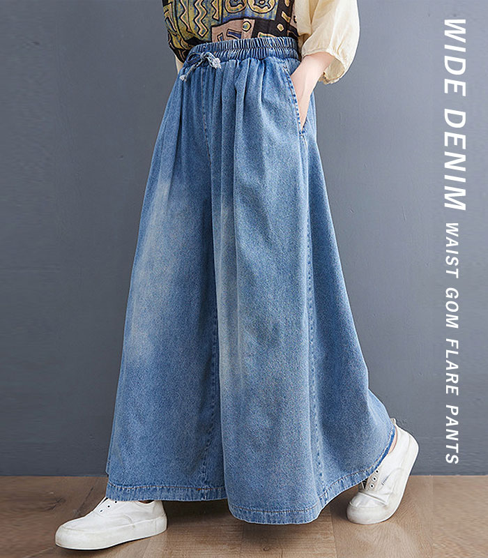 【24H限定!3点購入で全品半額!】 【3990円!クーポンで!】 ワイド デニム パンツ レディース 楽ちん 春夏秋冬 体型カバー おしゃれ ボトムス ポケット 大きいサイズ ゆったり セール SALE(送料無料)^b463^