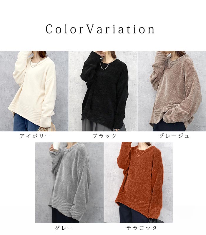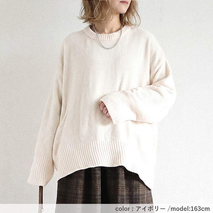 【3990円!クーポンで!】 セーター レディース ニット トップス 丸首 モールニット ゆったり オーバーサイズ 着回し カジュアル(送料無料)^t1069^