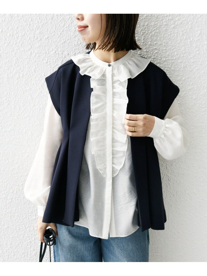 【WEB限定】<手洗い可能>ダンボール フロント タック ジレ SHIPS WOMEN シップス トップス ベスト・ジレ ネイビー ベージュ【送料無料】[Rakuten Fashion]