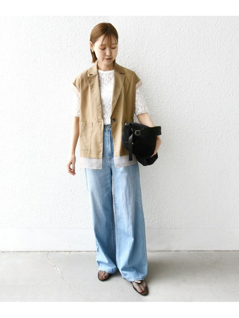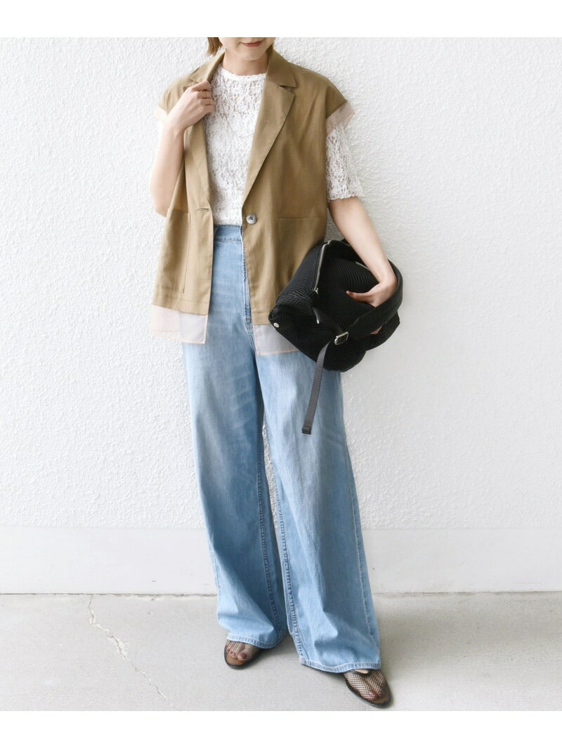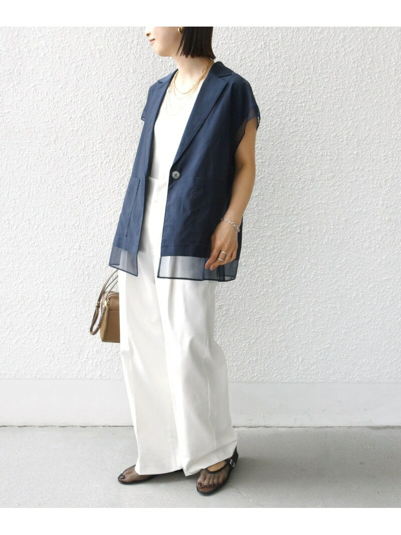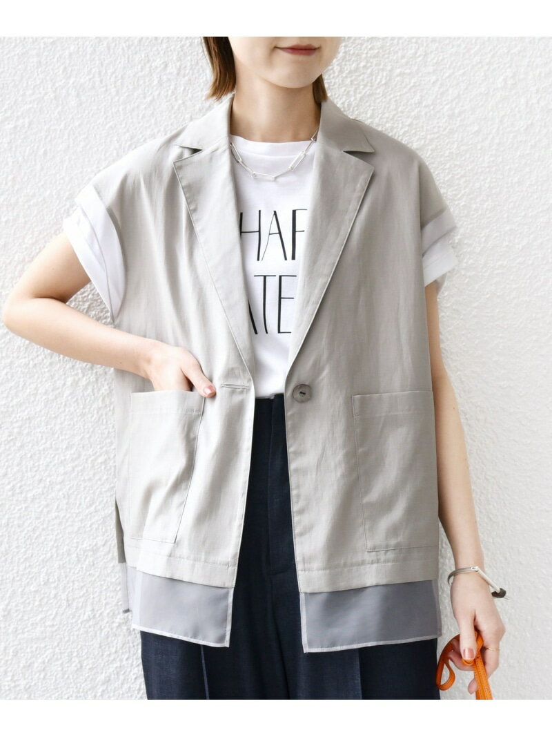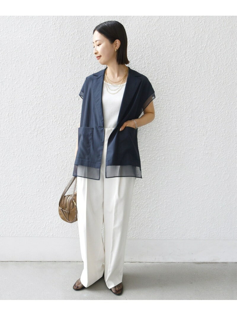《予約》【WEB限定】<手洗い可能>シアー コンビ テーラード ベスト SHIPS WOMEN シップス トップス ベスト・ジレ ネイビー ブラウン【先行予約】*【送料無料】[Rakuten Fashion]