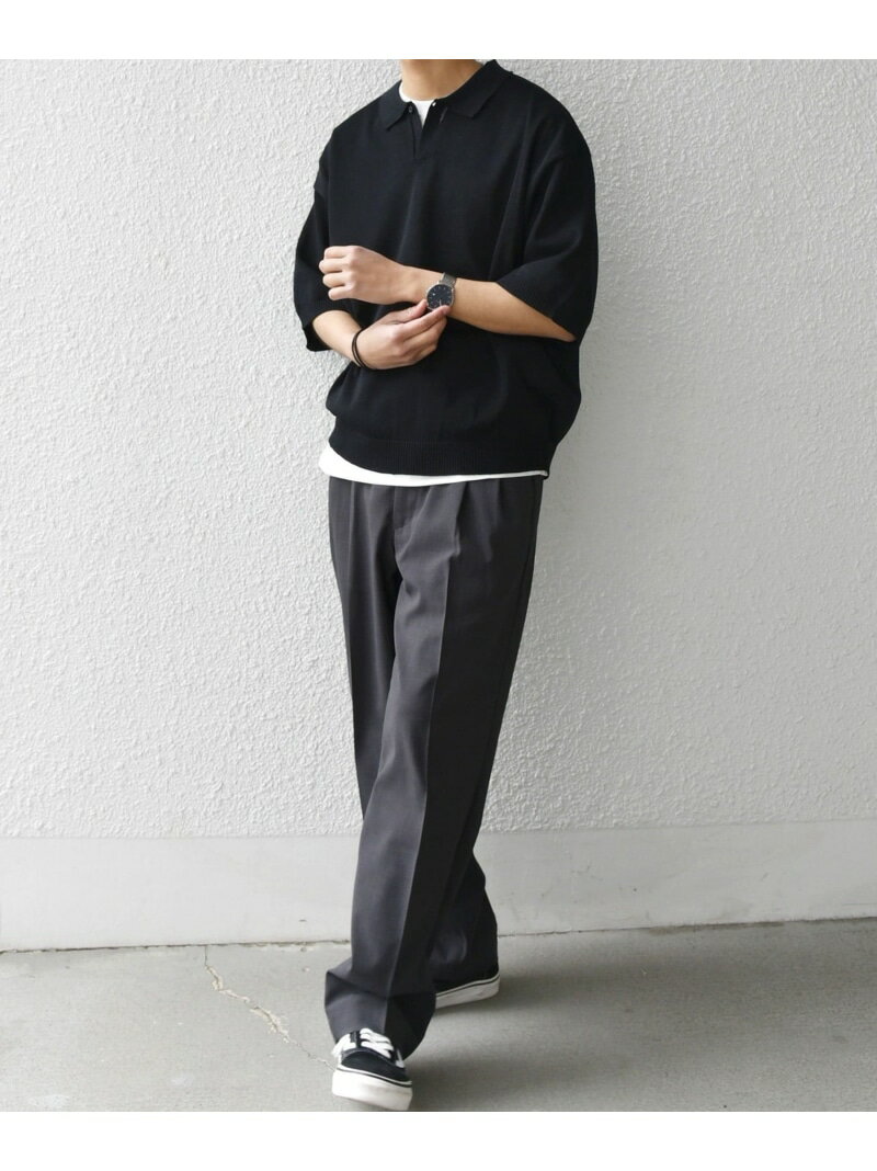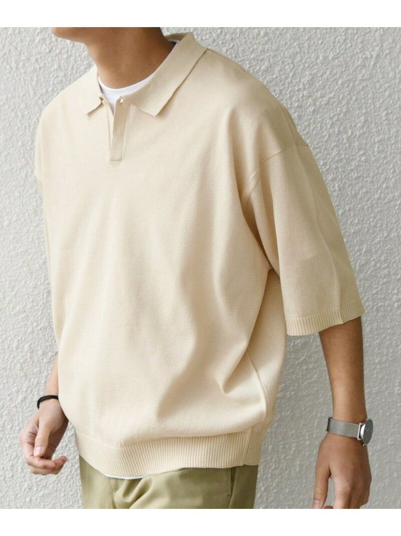 SHIPS any:<手洗い可能>リネンミックス ハイゲージ ニット スキッパー ポロシャツ◆ SHIPS any シップス トップス ポロシャツ ブラック ホワイト ネイビー【先行予約】*【送料無料】[Rakuten Fashion]