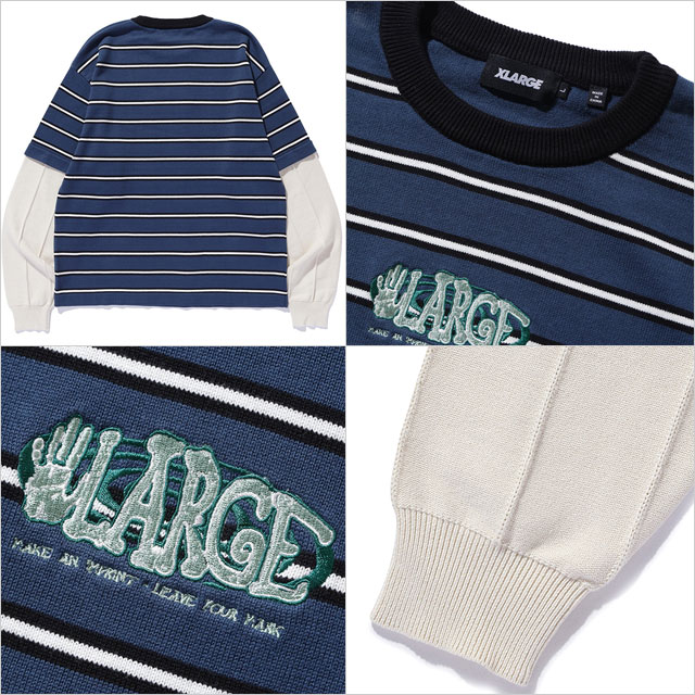 【4/30まで!最大100%ポイントバック!】エクストララージ XLARGE レイヤード クルーネック ニット (101251015004 SS25) LAYERED CREWNECK KNIT メンズ トップス 重ね着 ボーダー NAVY