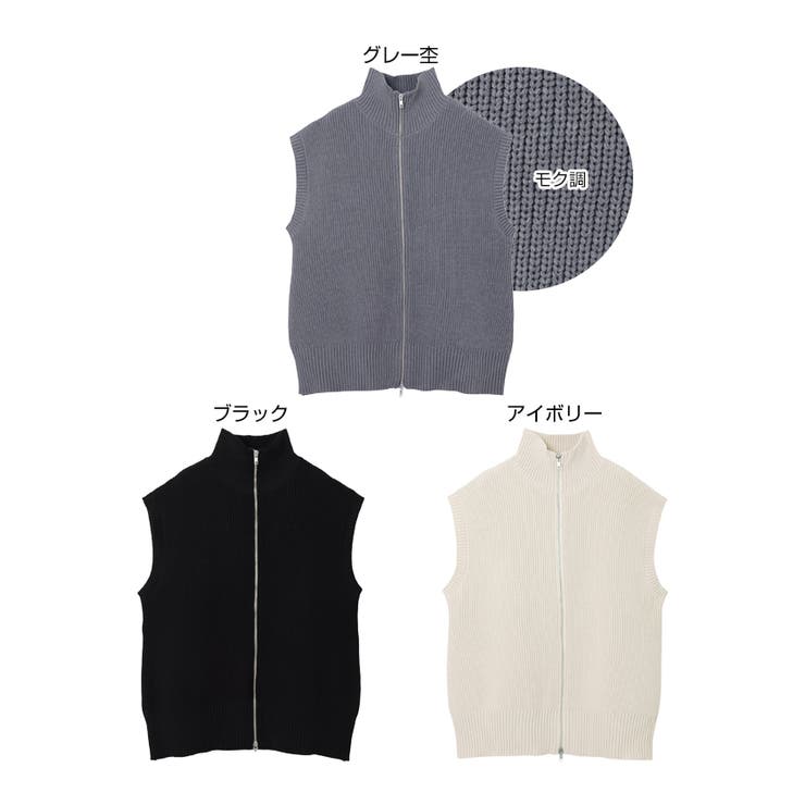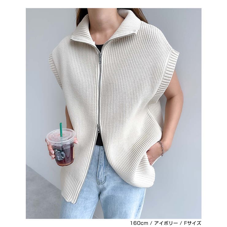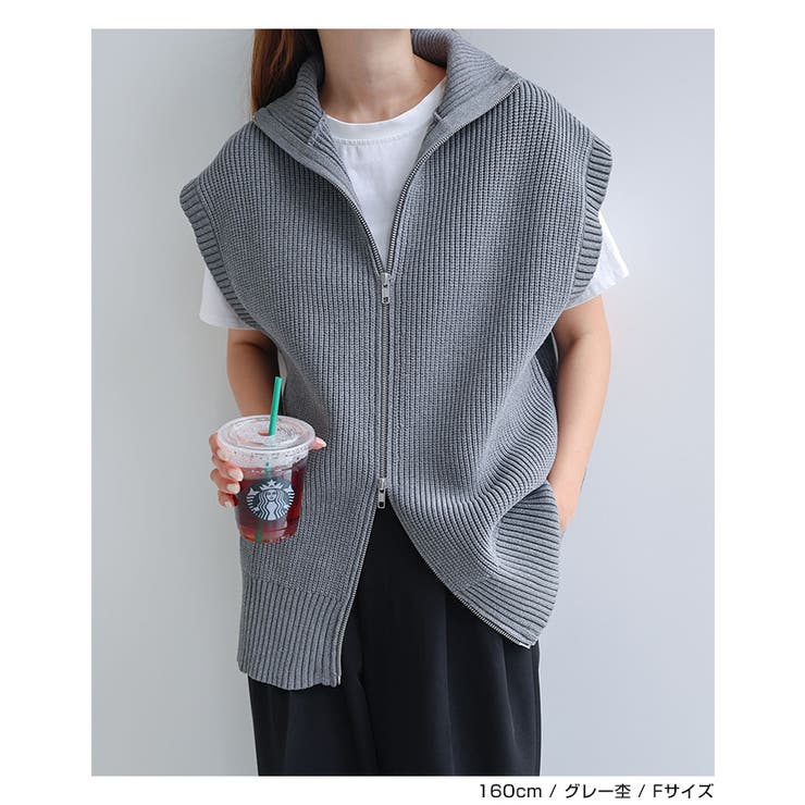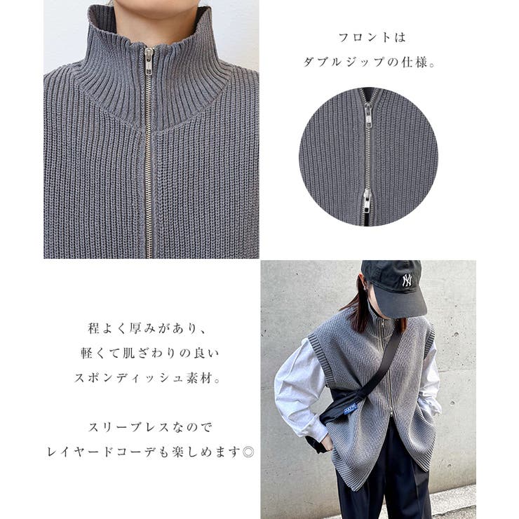 スポンディッシュ ダブルジップ ニット ベスト トップス レディース カーディガン オーバーサイズ 羽織り 男女兼用 ノームコア レイヤード 重ね着 シンプル カジュアル 春 夏 秋 冬 ANME アンメ