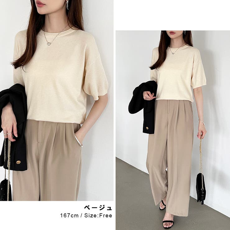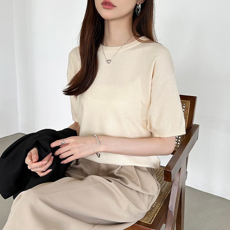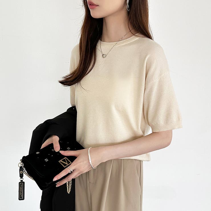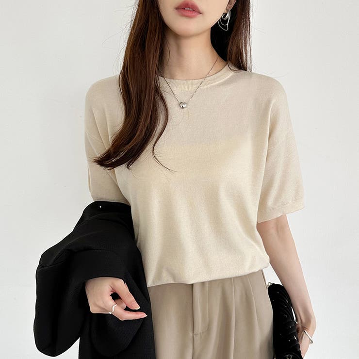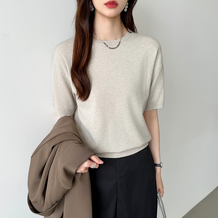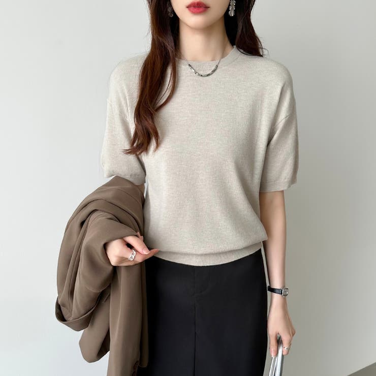 【5/27 1:59まで 5%OFFクーポン】COCOMOMO 【13色展開】 サマーニット オフィスカジュアル クルーネックニット 半袖 クルーネック レディース ニット トップス プルオーバー きれいめ 上品 二の腕カバー 五分袖 オフィス 大人 リ