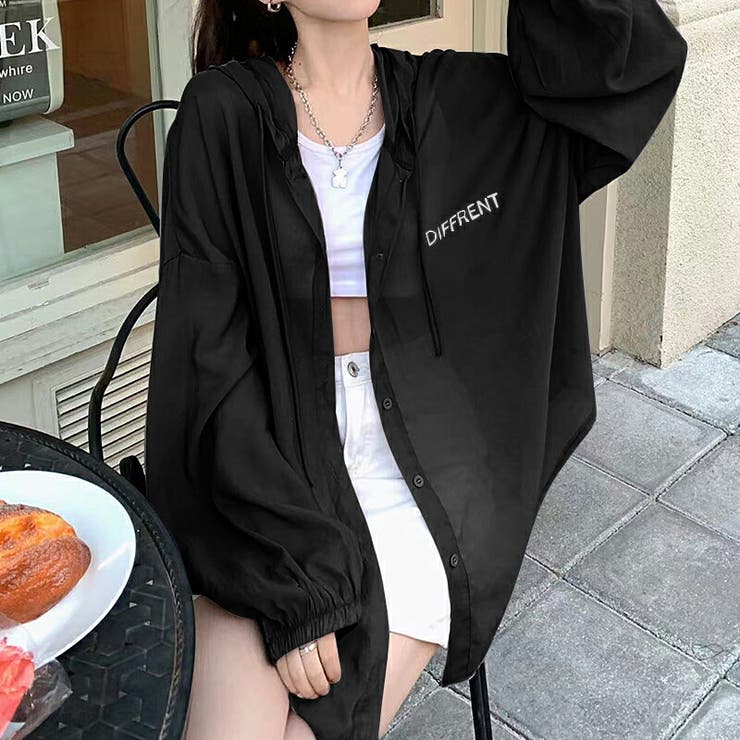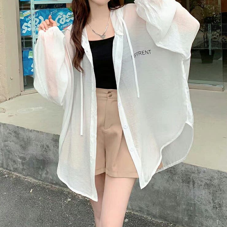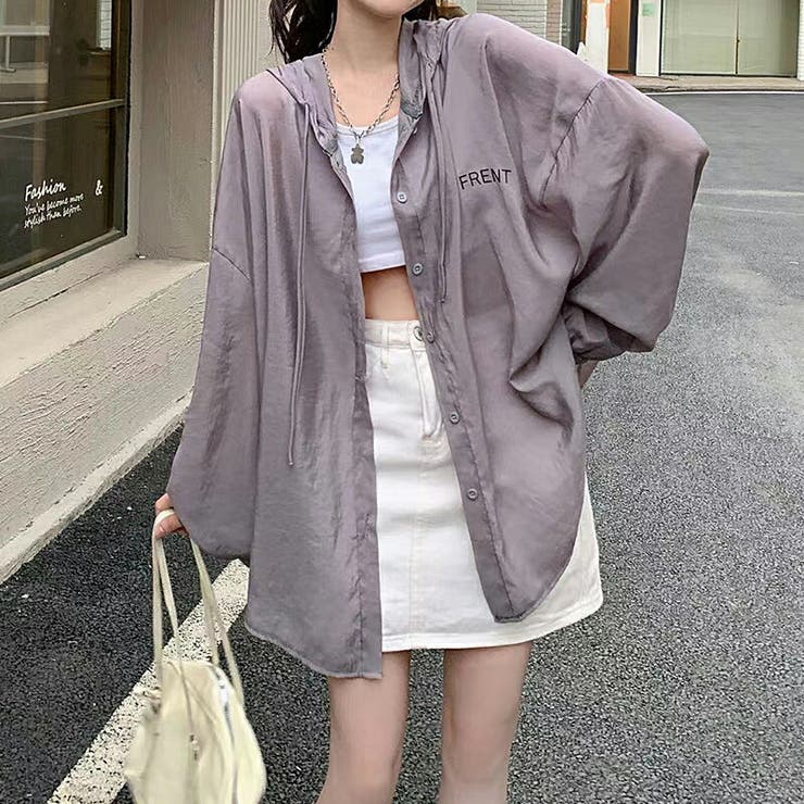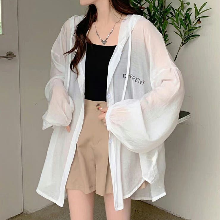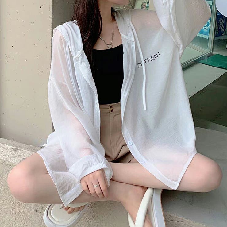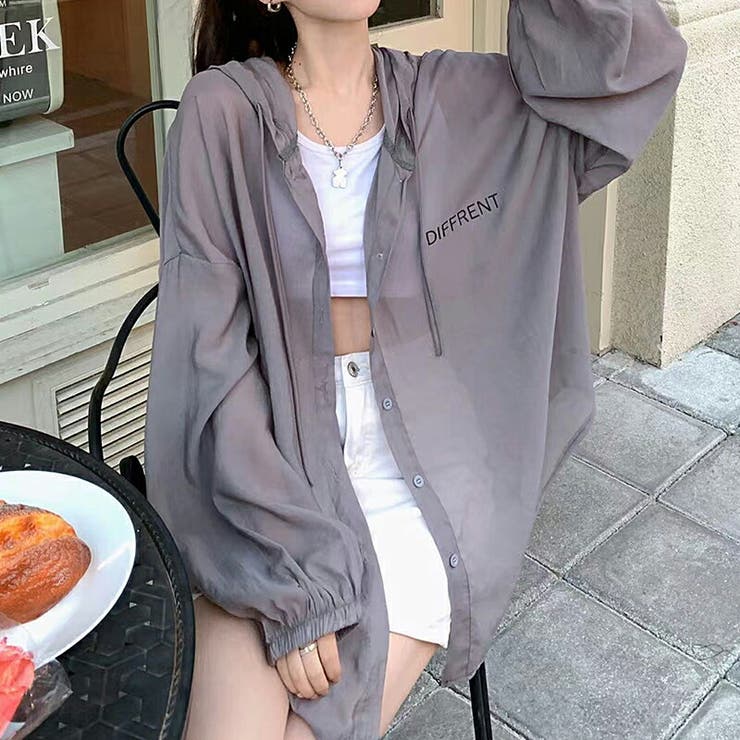 【店内全品10%OFF】シアー素材パーカー 長袖ブルゾン レディースアウター レインコート 薄手ブルゾン ブルゾン アウター レディース ボタンダウン 薄手 カジュアル おしゃれ フードつき ロゴ ミドル丈 紫外線防止対策 春 夏
