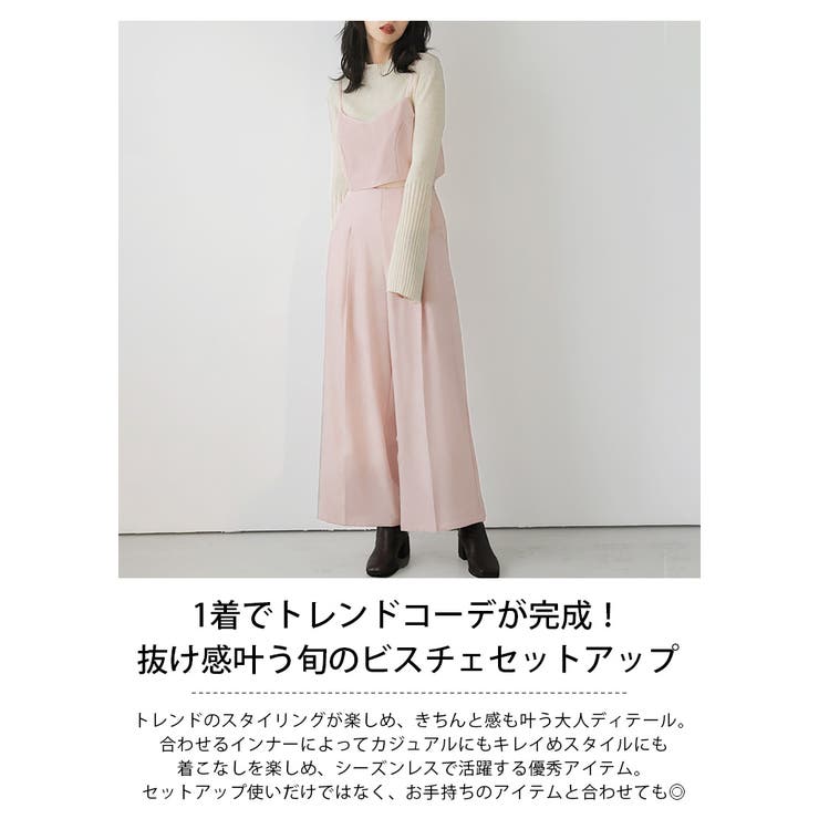 【5/27 1:59まで 5%OFFクーポン】La-gemme ビスチェ セットアップ 2点セット ワイドパンツ ハイウエスト センタープレス タック入り アジャスター付き レディース おすすめ おしゃれ 2024春夏秋新作【lsrss24-228】 ト