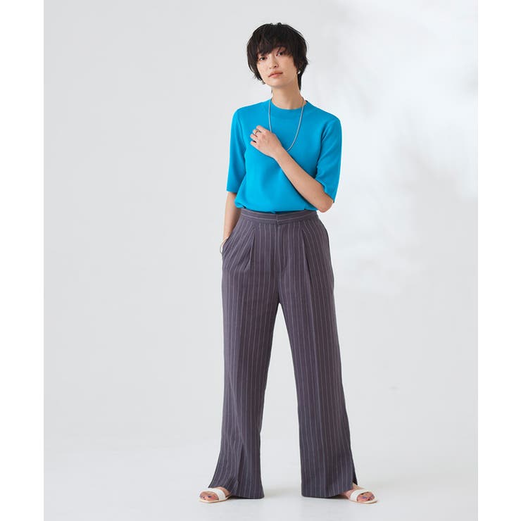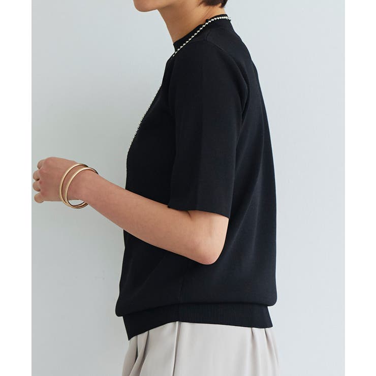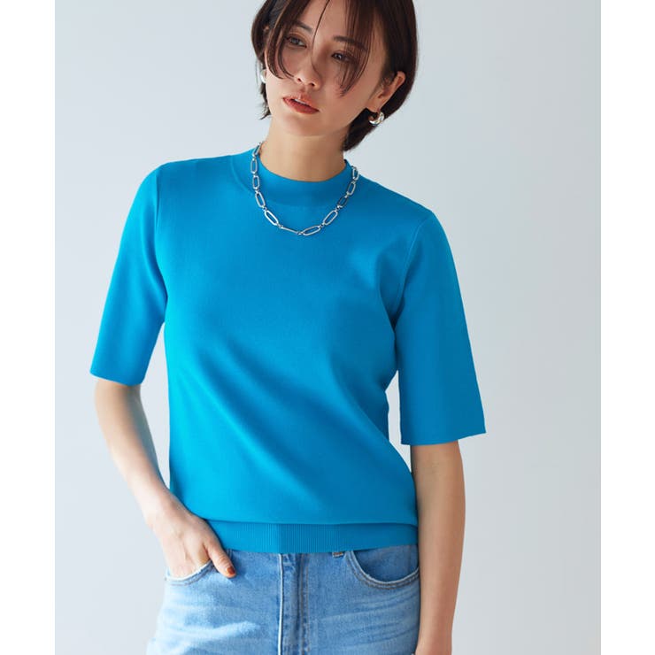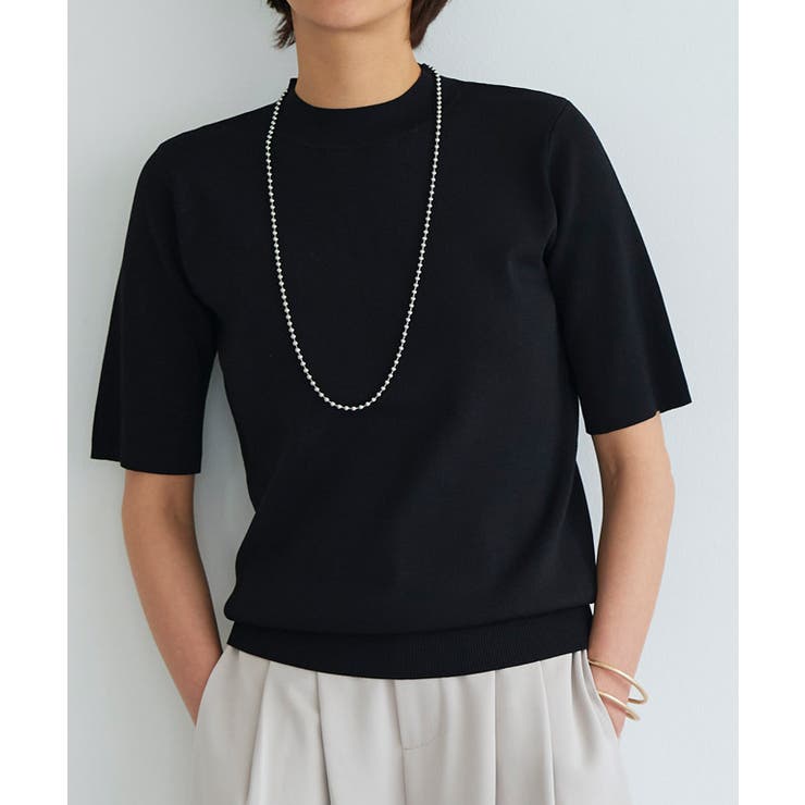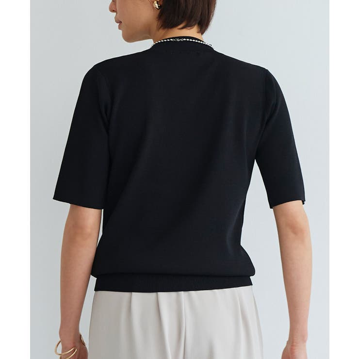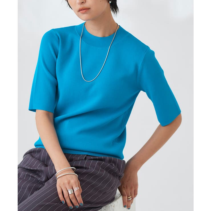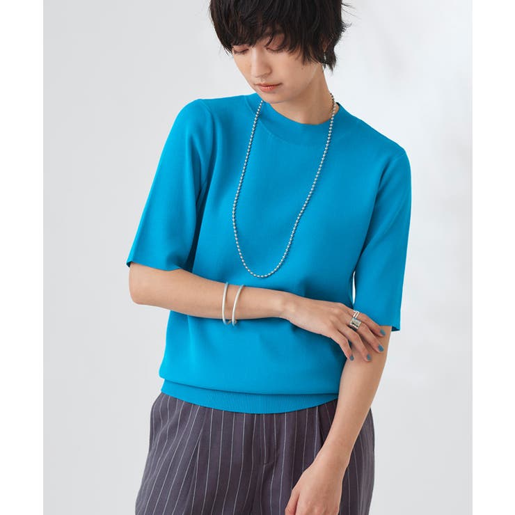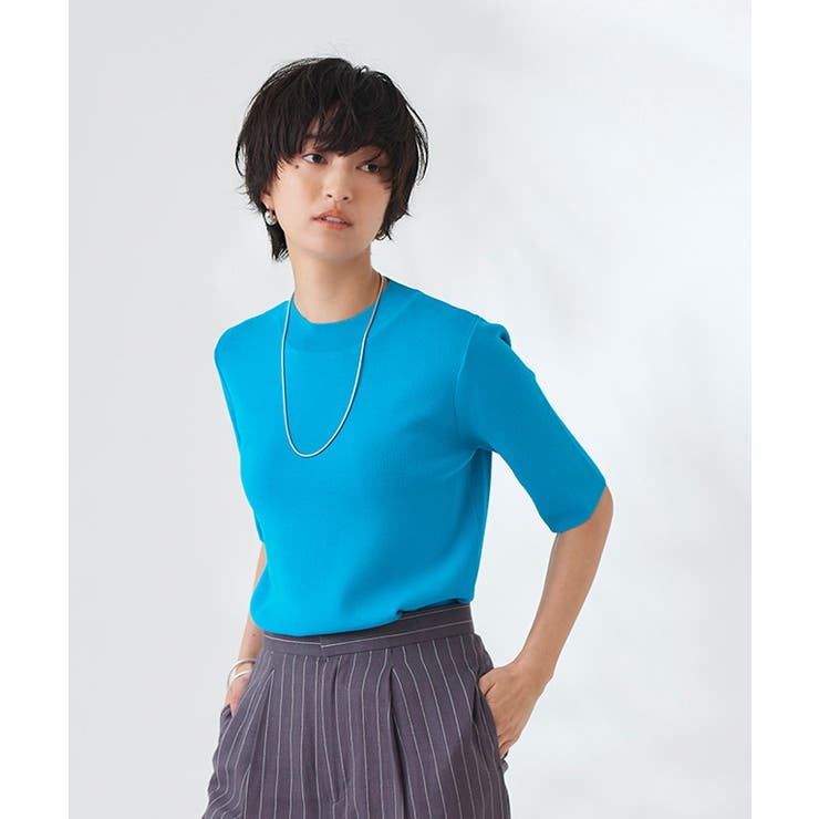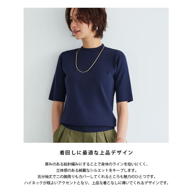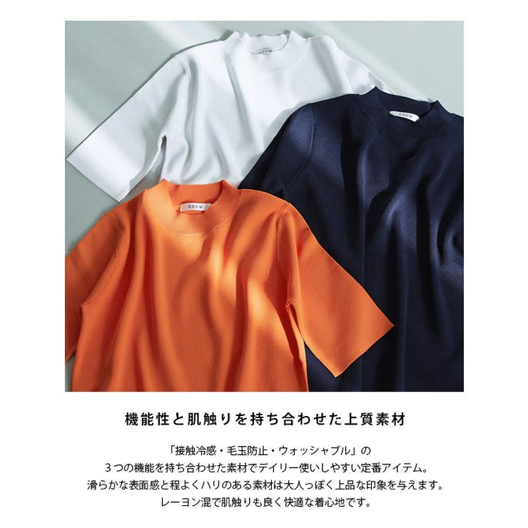 Pierrot [RASW]多機能ハーフスリーブニット ☆ ニット 半袖 多機能 五分袖 ハイネック 上品 接触冷感 毛玉防止 ウォッシャブル サマーニット 夏 夏服 ピエロ トップス
