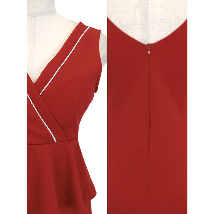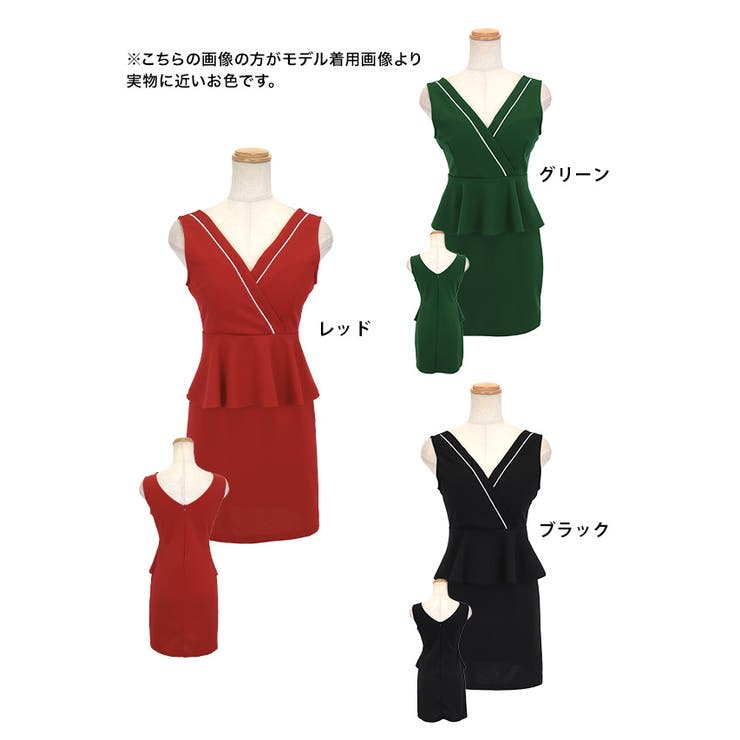 my minette ノースリーブハイウエストペプラムタイトミニドレス キャバドレス キャバ ドレス タイトドレス 袖なし Vネック ペプラムドレス M-Lサイズ グリーン レッド ブラック なぎ myMinette マイミネット ワンピース・ドレス