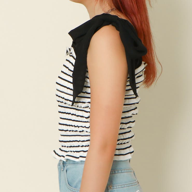 【3/11 1:59まで 10%OFFクーポン】ボーダー肩リボンブラトップ