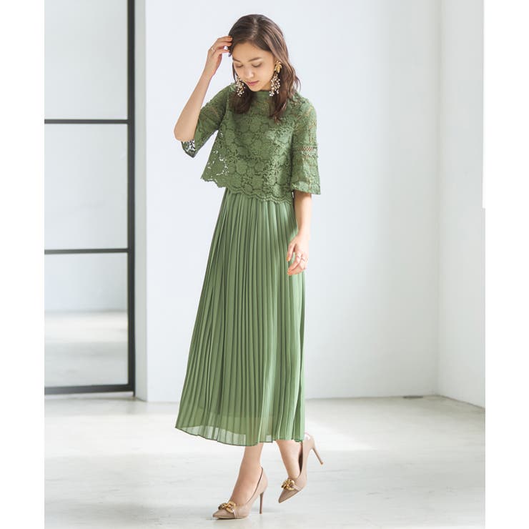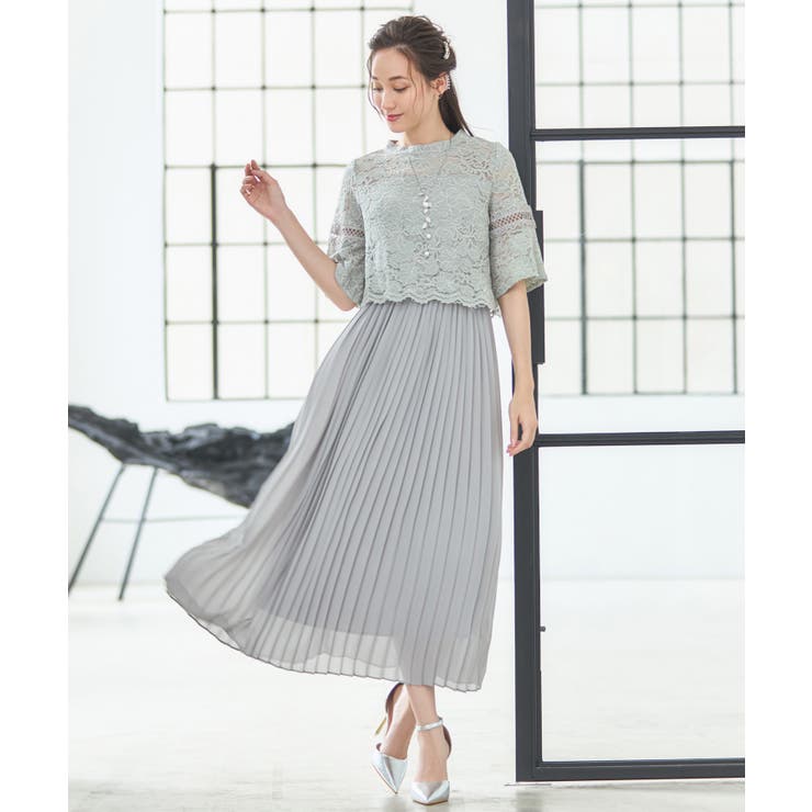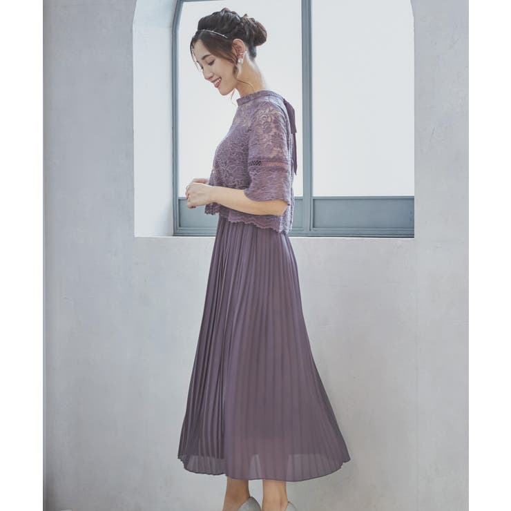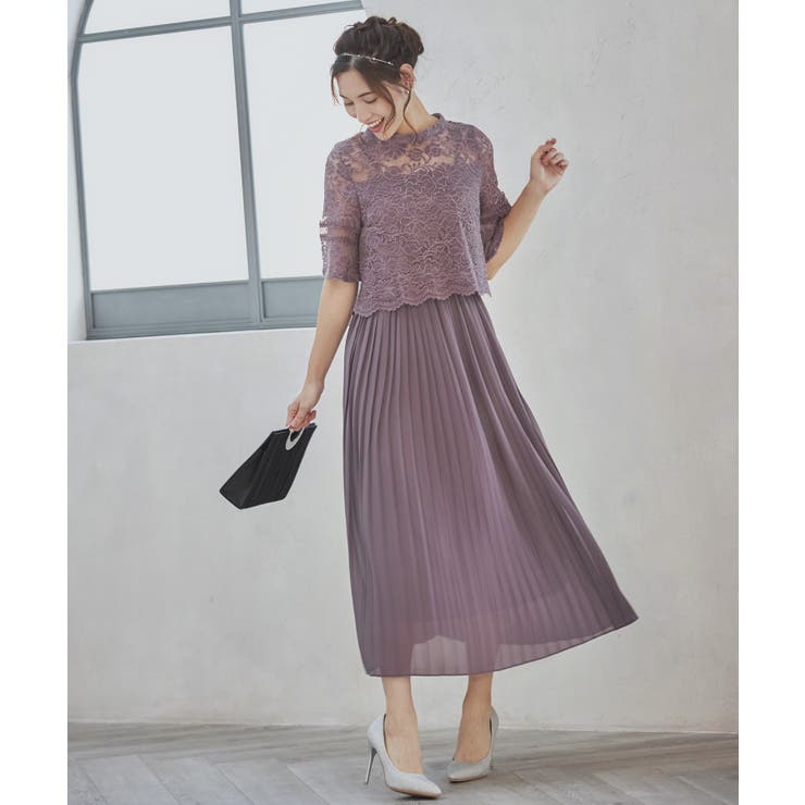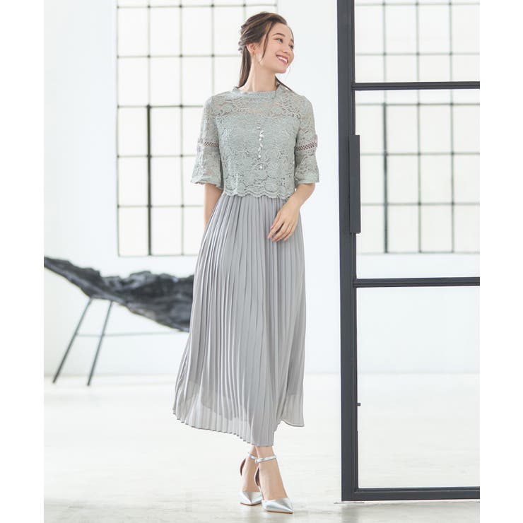 DRESS+ ワンピース ドレス レース プリーツ パーティードレス 結婚式秋卒業式 成人式 ワンピース・ドレス