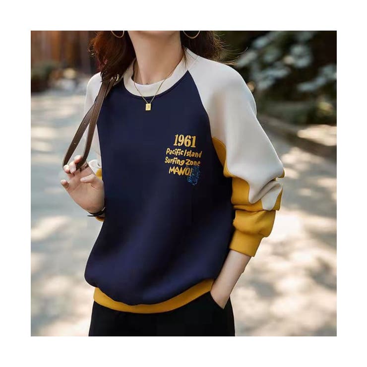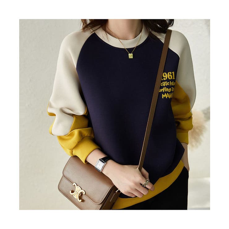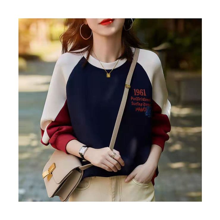 【条件達成でMAX15%OFF】トレンド感のある大人カジュアルに仕上げる配色ラグランスリーブトレーナー スウェット スポーティー プルオーバー ゆったり 大きめ おしゃれ