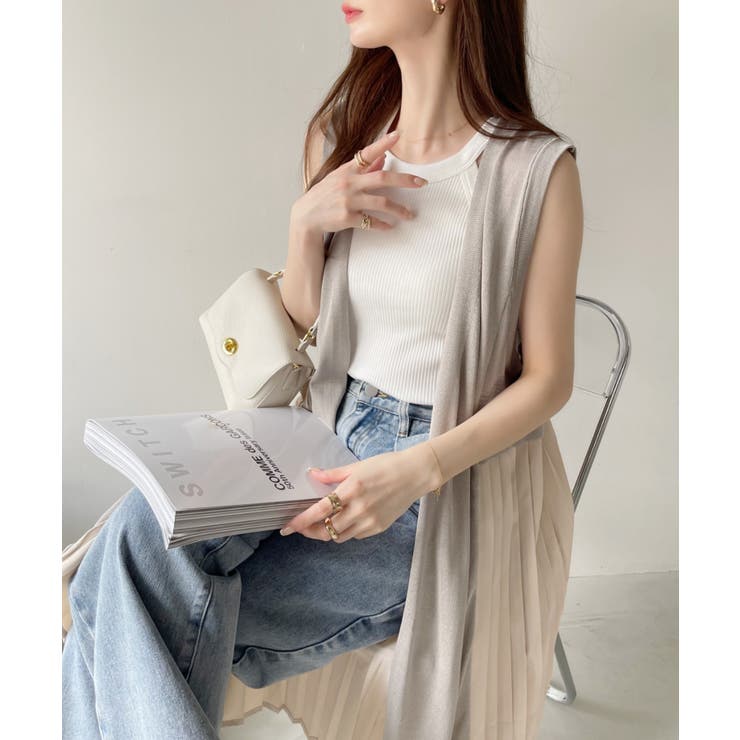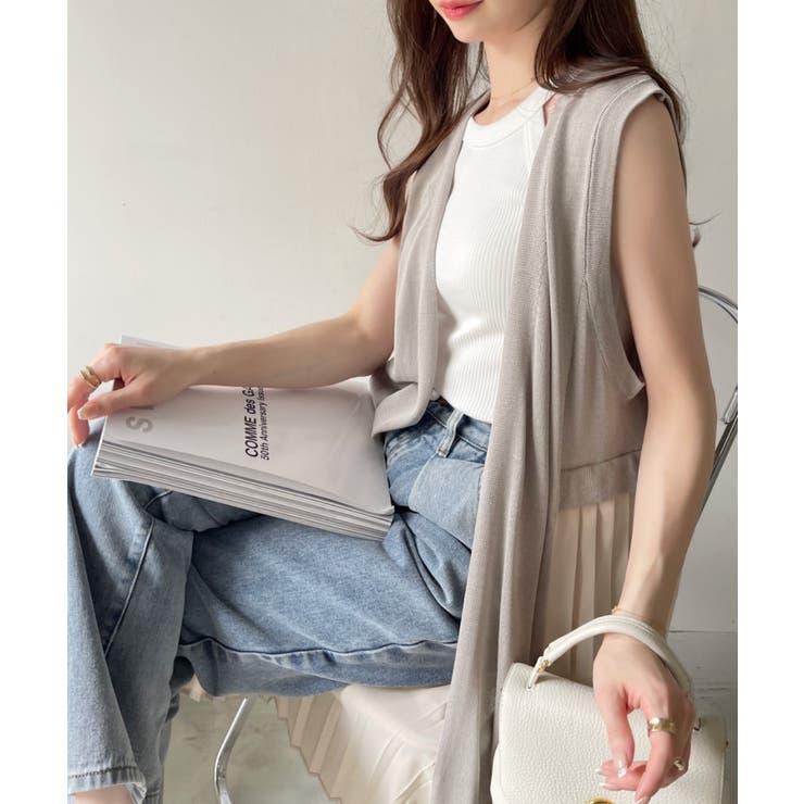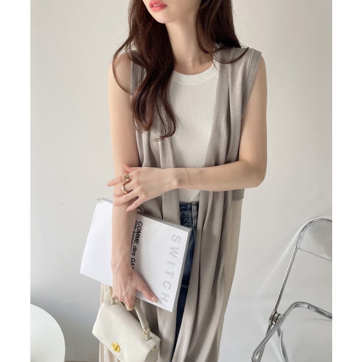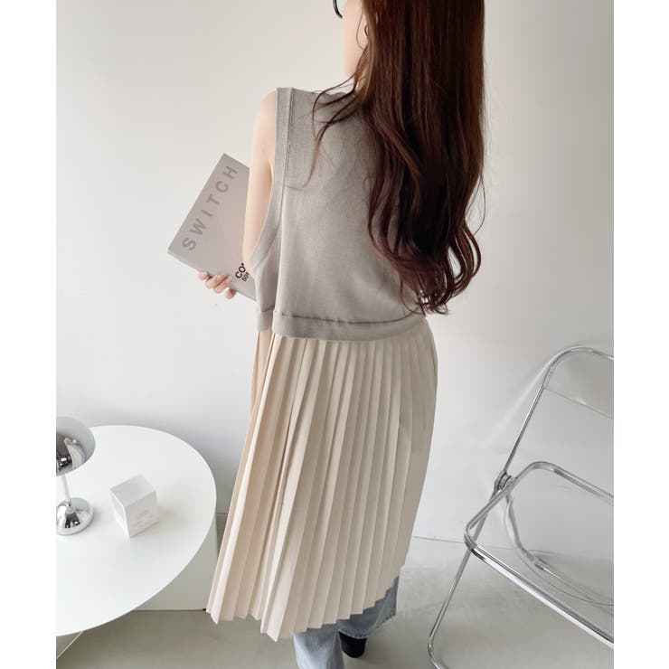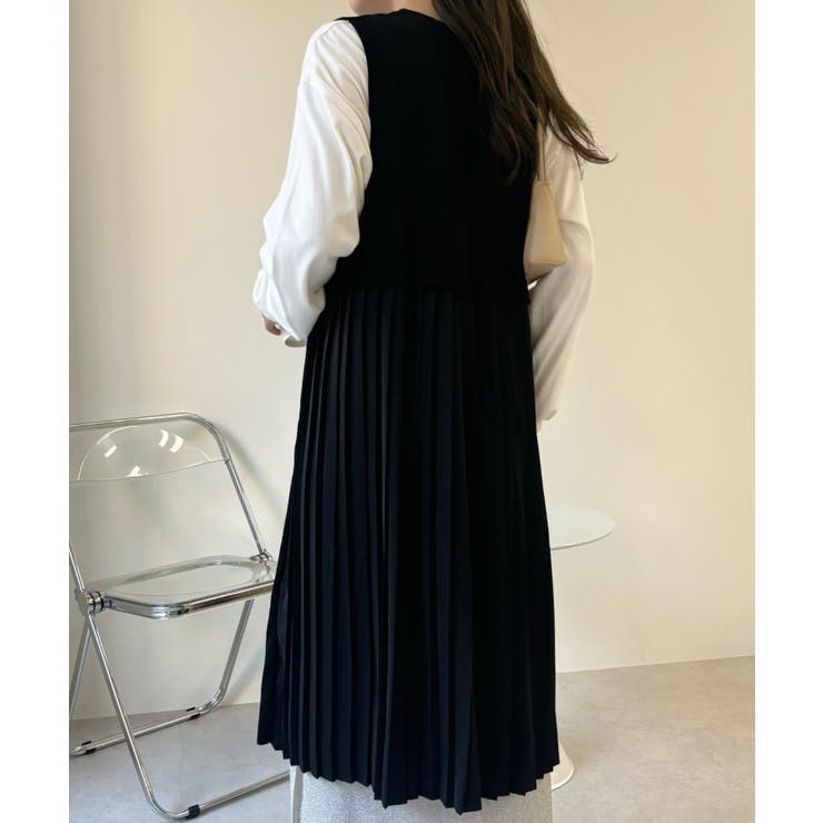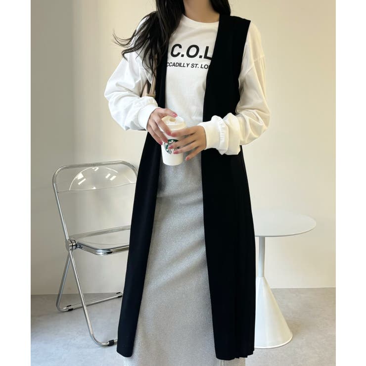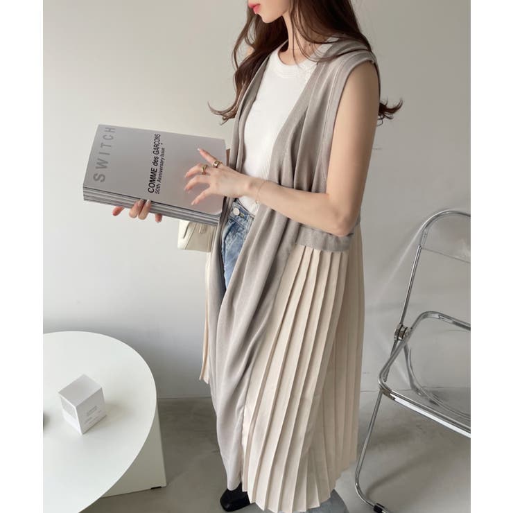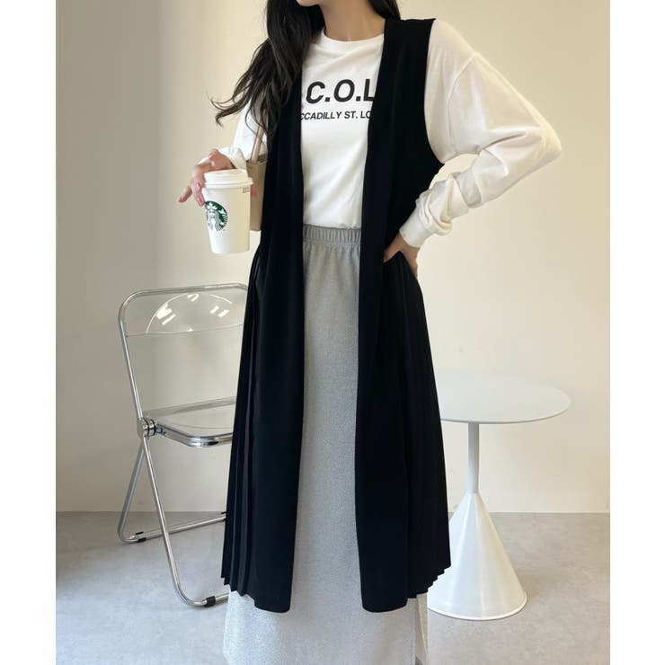 【6/11 1:59まで 10%OFFクーポン】Eclat one 【Eclat one】バックプリーツ ロング ジレ ベスト ニットベスト ニットジレ ノースリーブ プリーツ 体型カバー 大人カジュアル オフィスカジュアル 冷房対策 レイヤード 重ね着