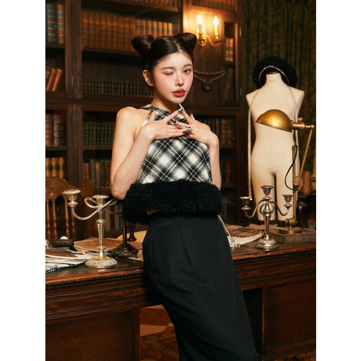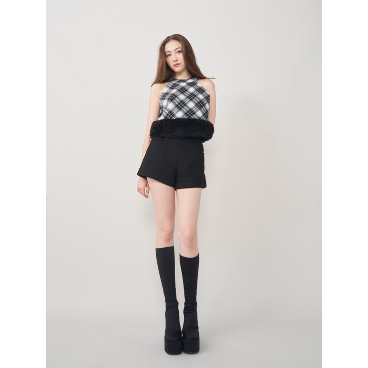 ファーチェックドッキングトップス
