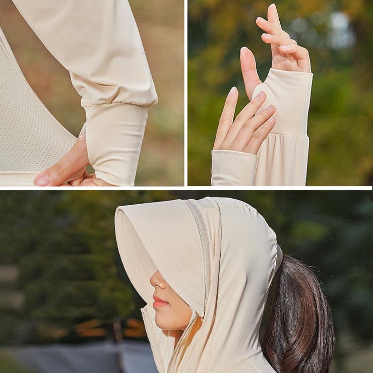 【6/11 1:59まで 10%OFFクーポン】maison de LATIR 暑い春 夏の日差しからお肌をまもってくれるUVカットパーカー 日焼け対策 柔らかい素材 薄手 フード付き ファスナー付き 冷房対策 紫外線対策 デイリーユース スポーツアイテ