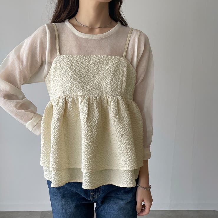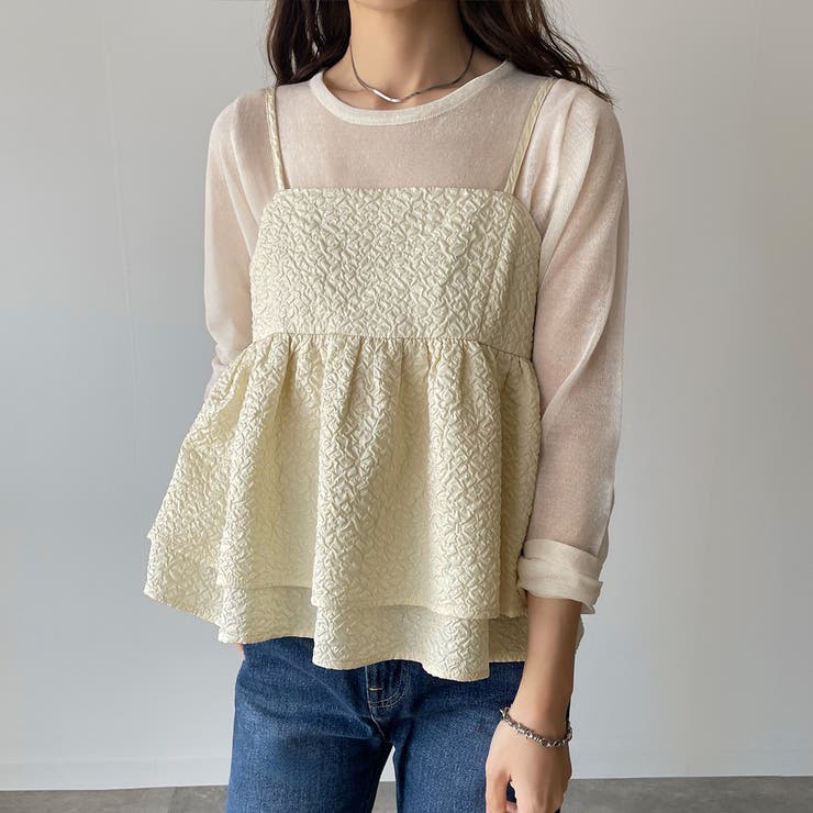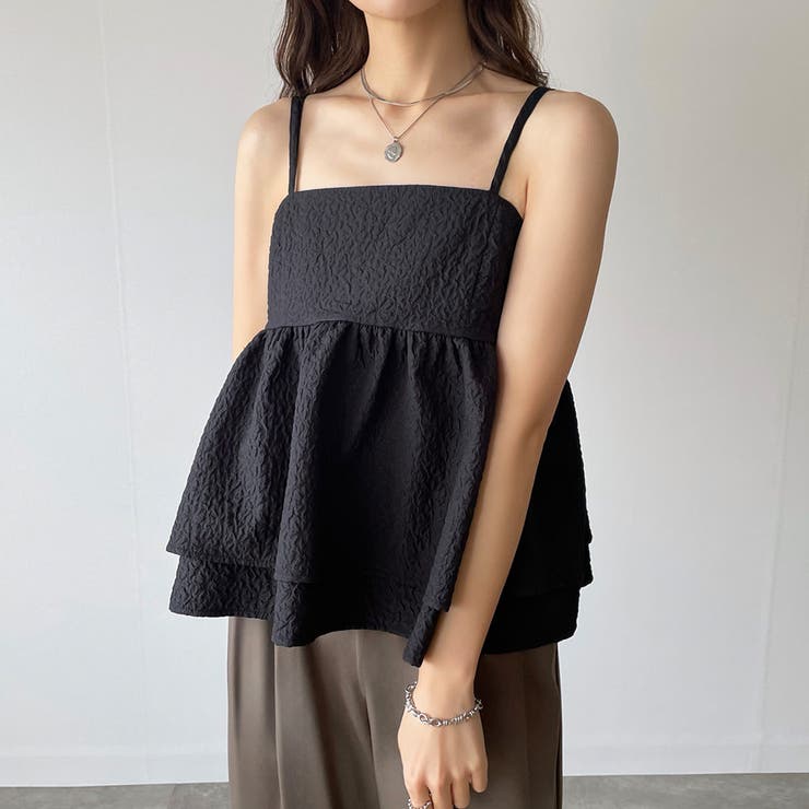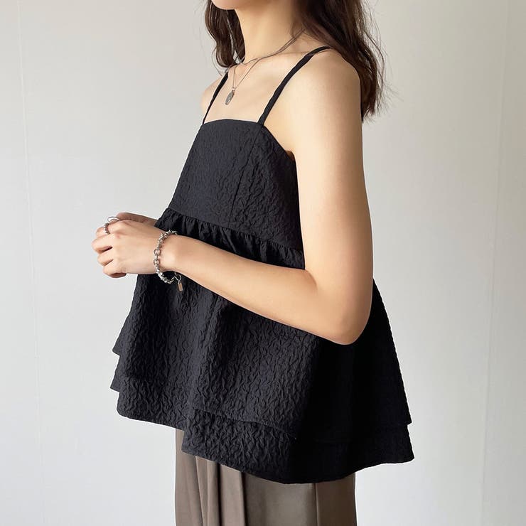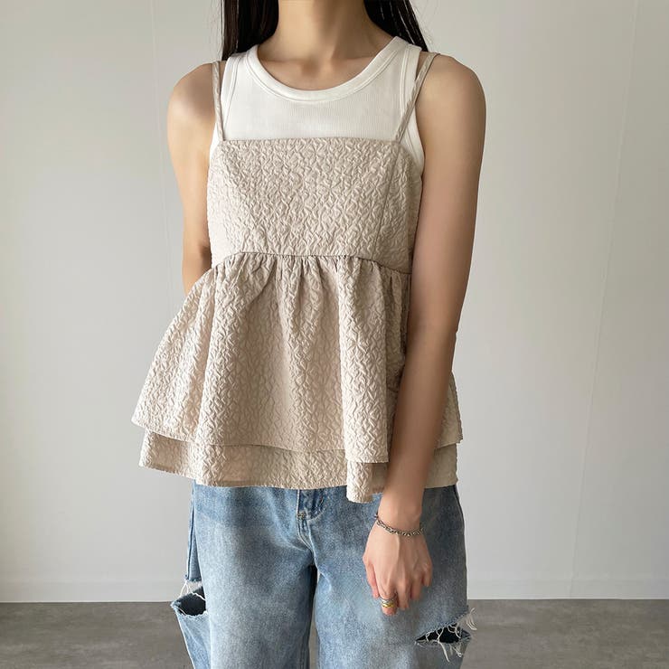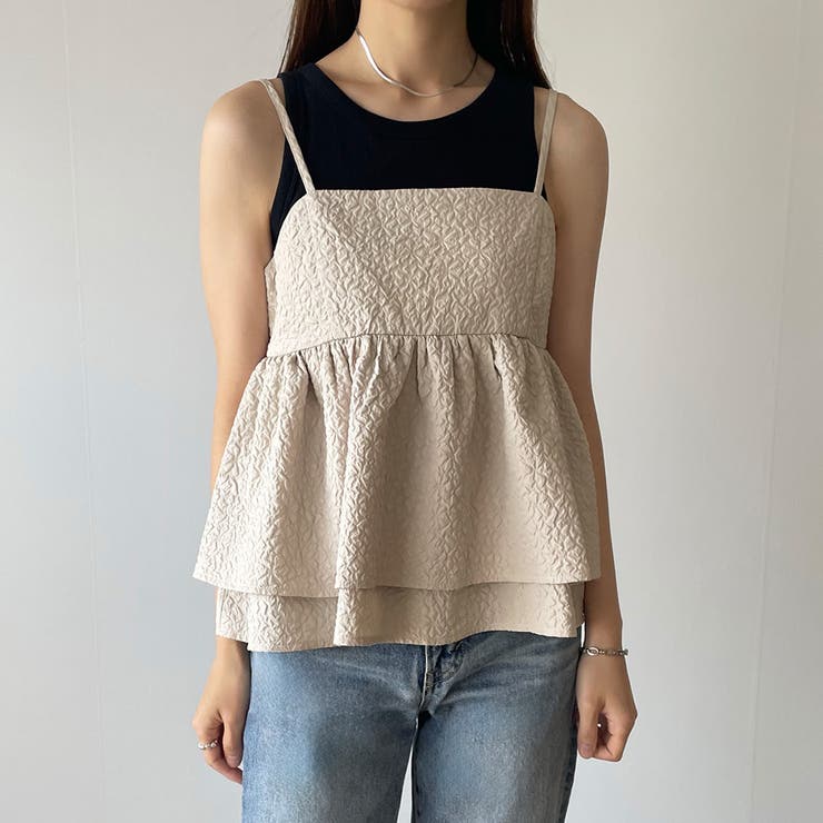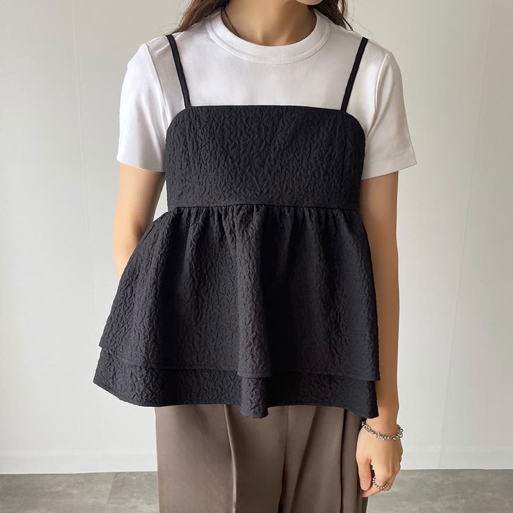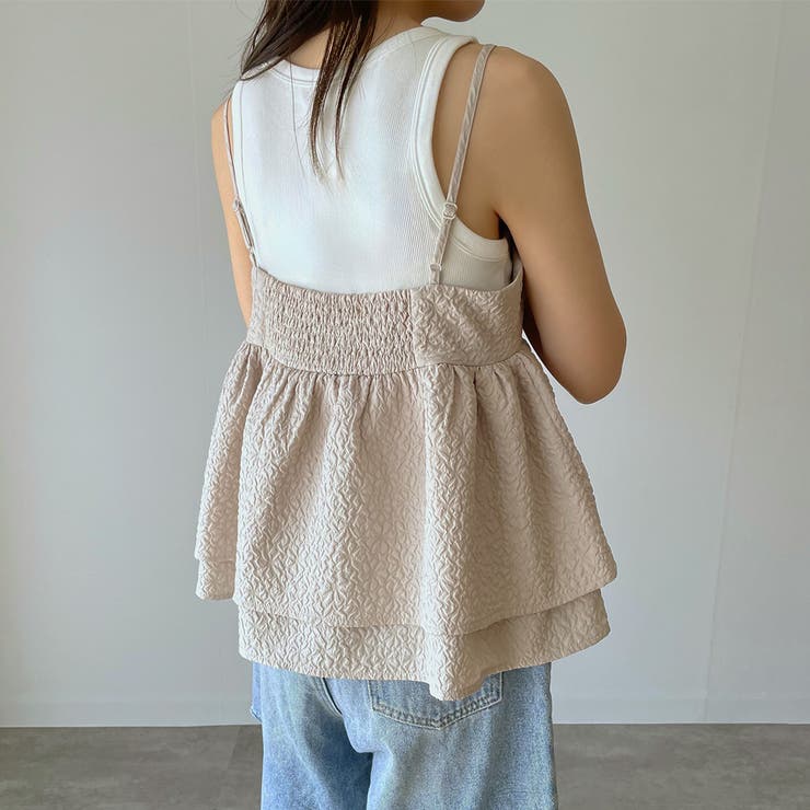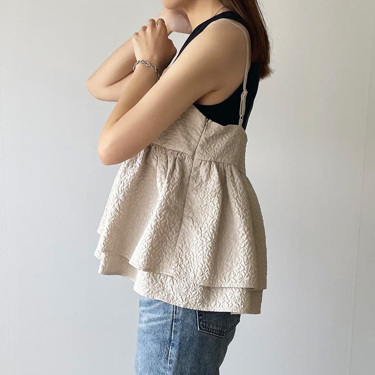 【4/10 1:59まで 10%OFFクーポン】ふくれジャガードフリルキャミビスチェ