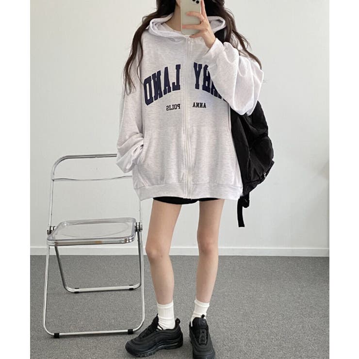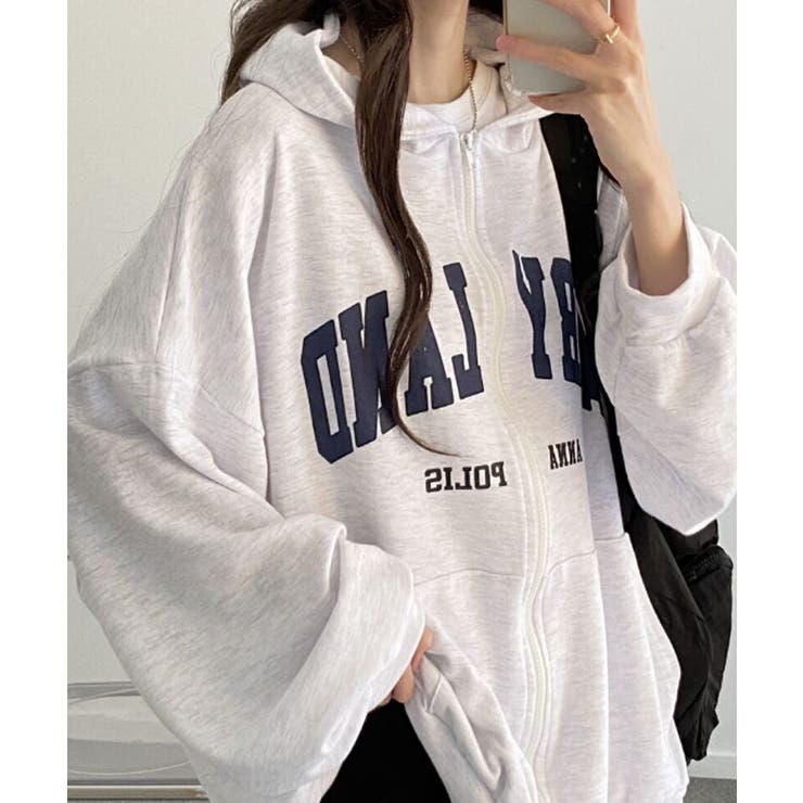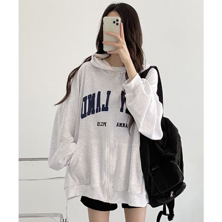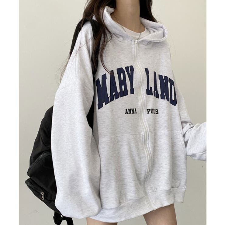 【店内全品5%OFF】ロゴ入り長袖ジップアップパーカー レディース 可愛い 長袖ブルゾン 春 ロゴ入り ジッパー付き 長袖スウェットパーカー アウター レディース 春夏レディース 大きめ 長袖 レディース
