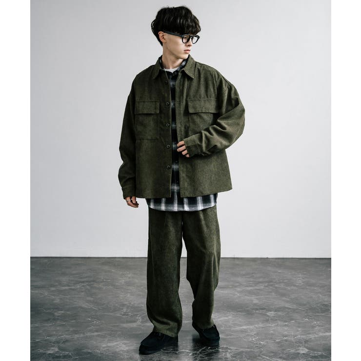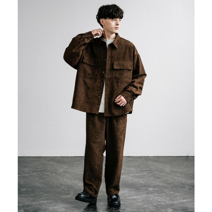 セットアップ コーデュロイ CPOシャツジャケット メンズ カバーオール ワイドパンツ イージー テーパード 上下 ライトアウター リラックス オーバーサイズ ゆったり 中太コール 8ウェル 無地 レトロ ヴィンテージ カジュアル きれいめ シンプル ストリート 13781