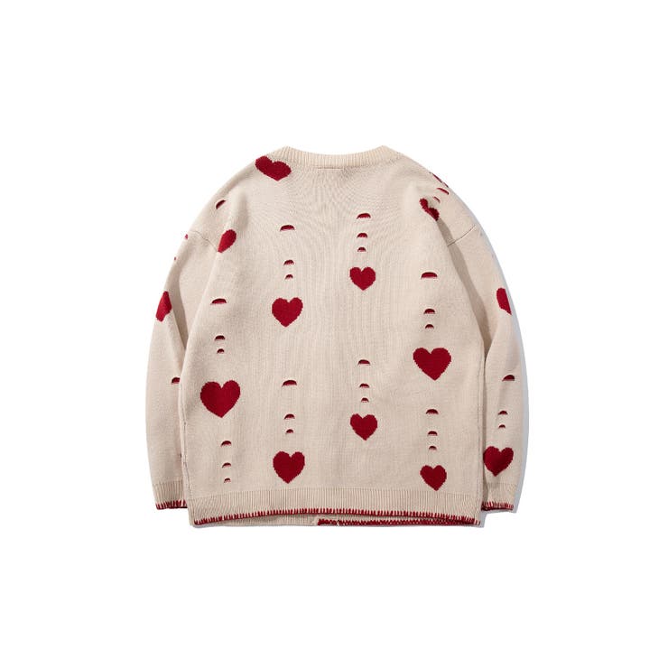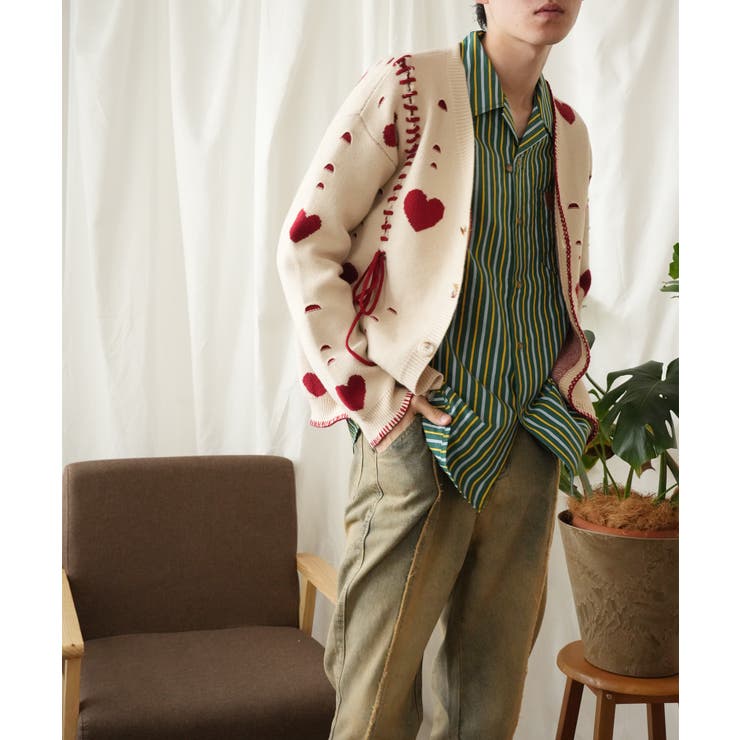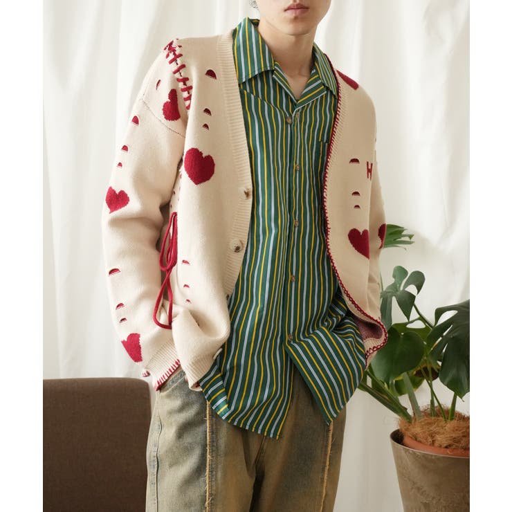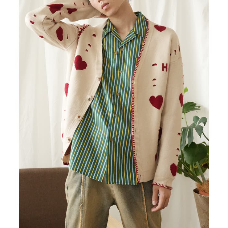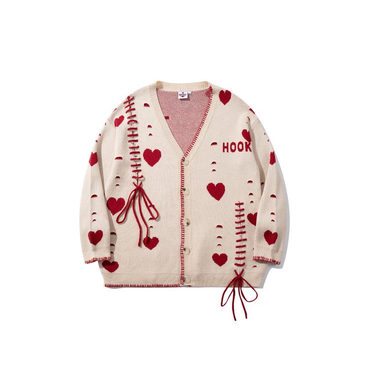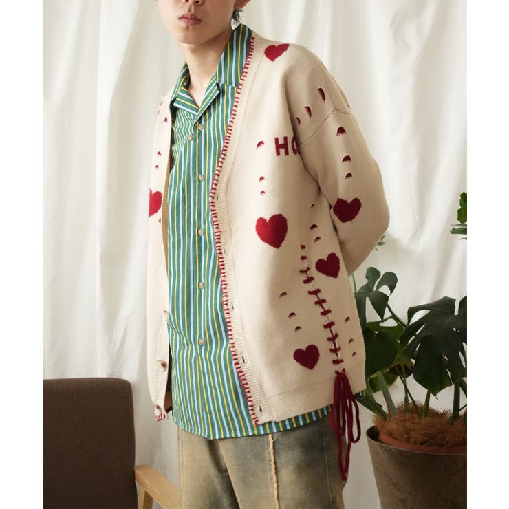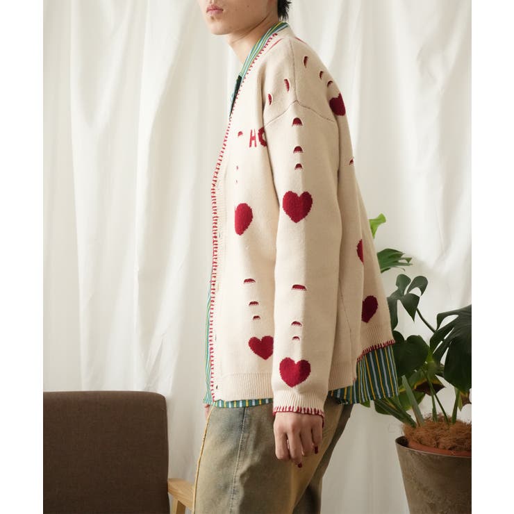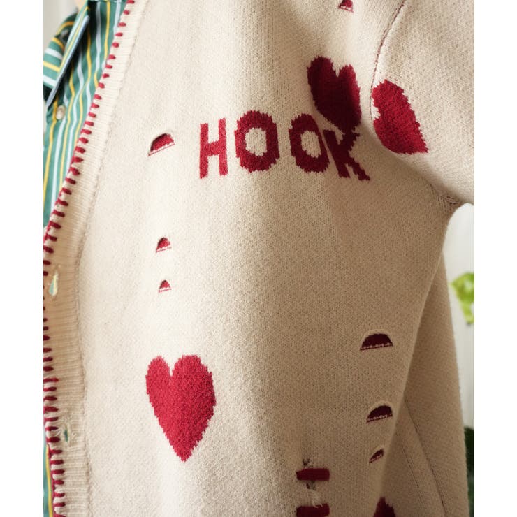 HOOK -original- ボロボロのハート総柄クレイジーステッチカーディガン【AW】