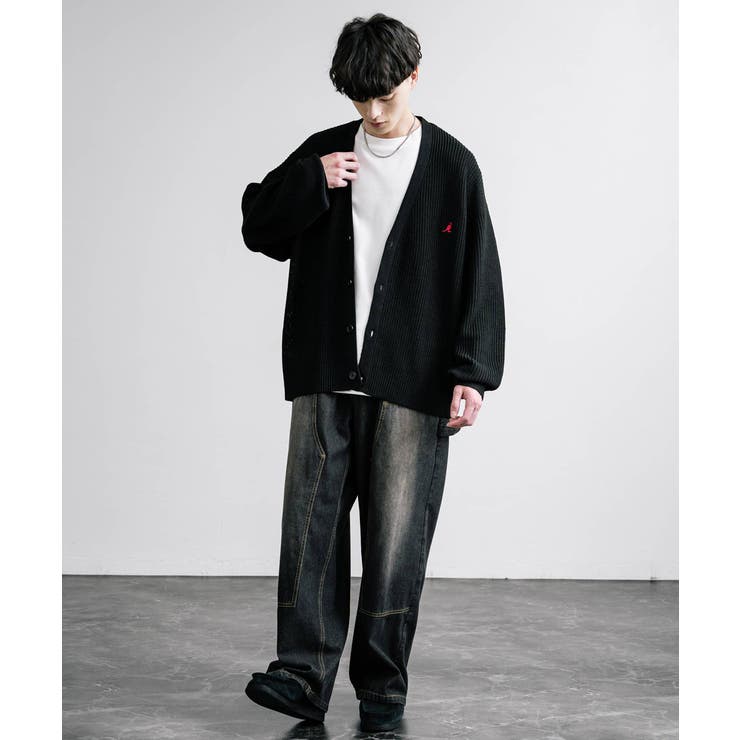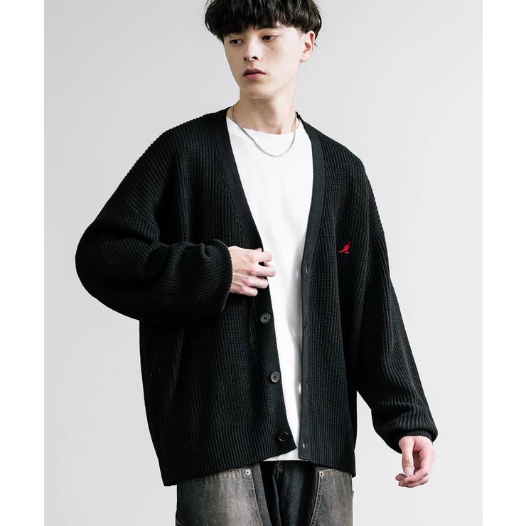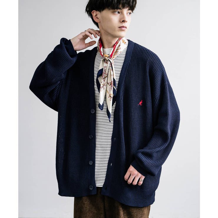 【ブラックフライデー限定 10%OFFクーポン】KANGOL カーディガン ワンポイント刺繍 カンゴール ニット メンズ レディース ライトアウター 畦編み 無地 ロゴ 別注 オーバーサイズ ビッグシルエット ルーズ リラックス ゆったり 羽織り Vネッ
