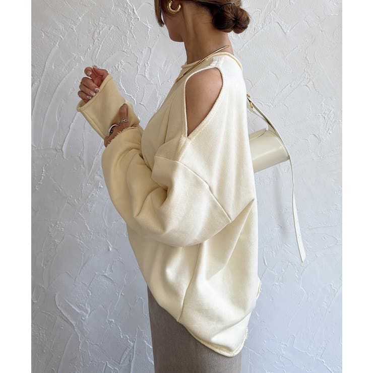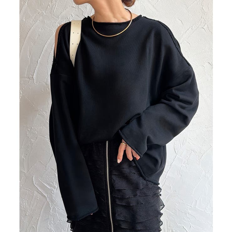 JUNOAH オープンショルダーオーバーサイズスウェット トップス