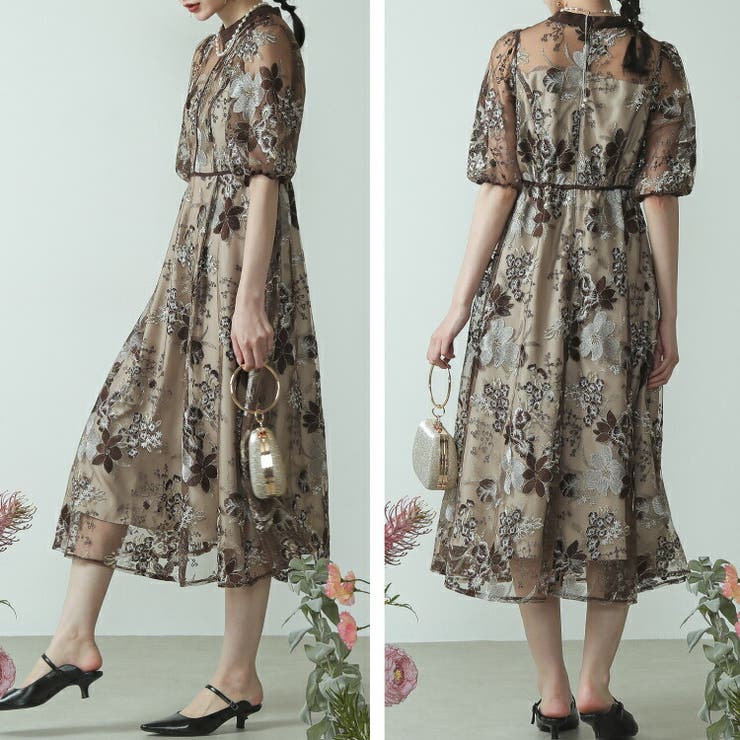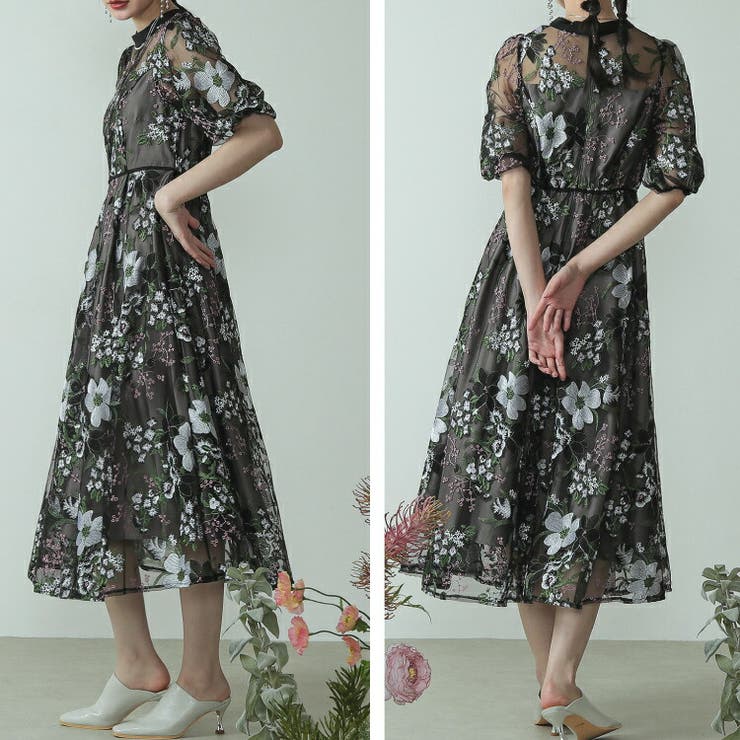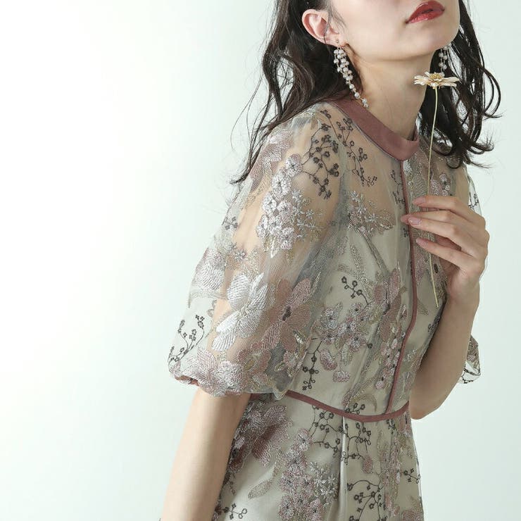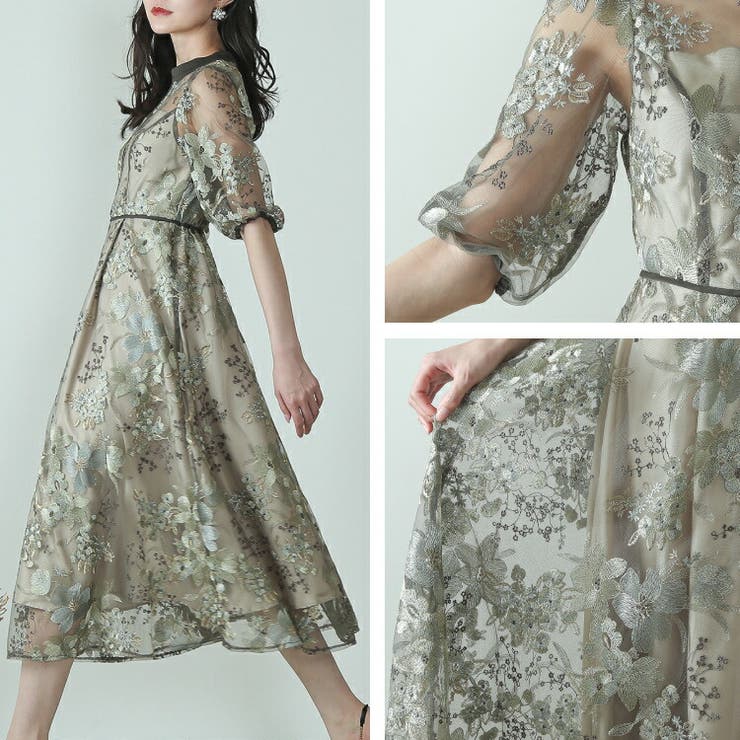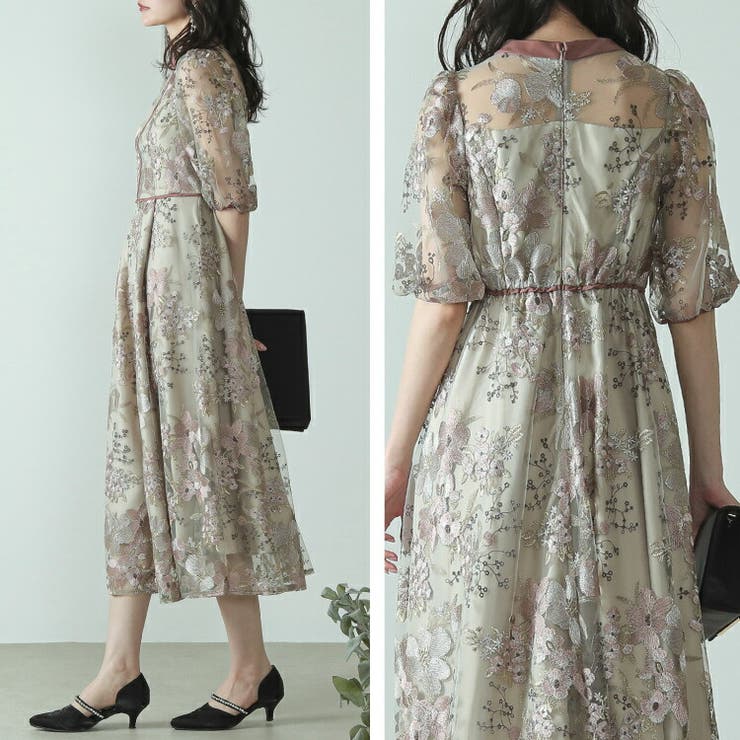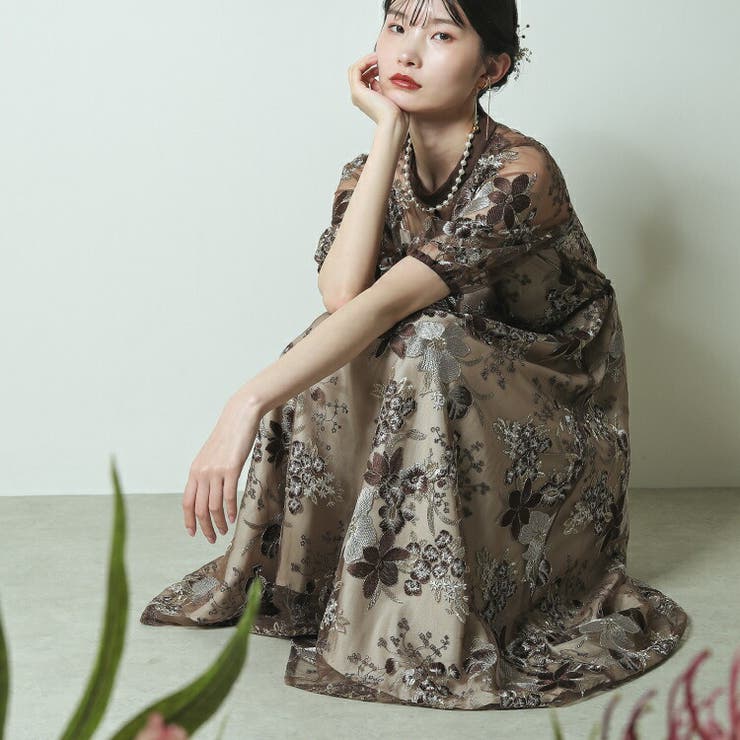 【12/11 1:59まで 10%OFFクーポン】新作 パーティードレス 結婚式 ロング 袖 ワンピース ロングドレス ドレス 刺繍 レース ロングワンピースドレス 袖 シフォン パーティー 袖あり 袖付き 披露宴 親族 大人かわいい 高身長 低身長 大
