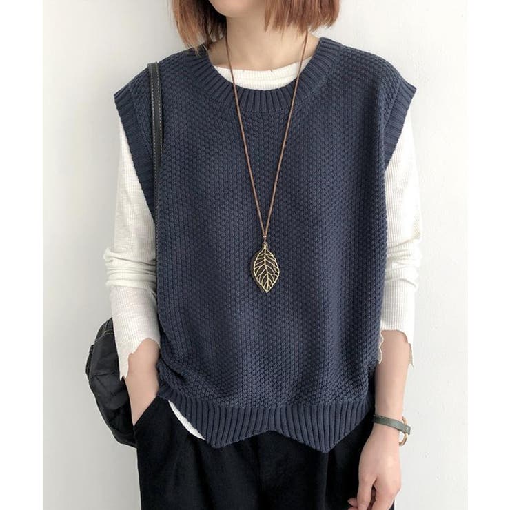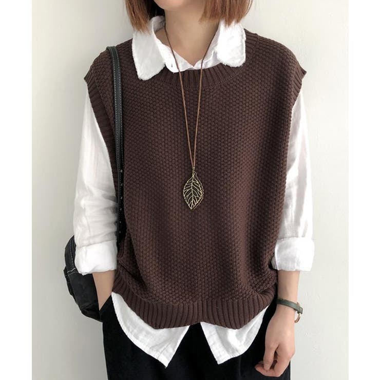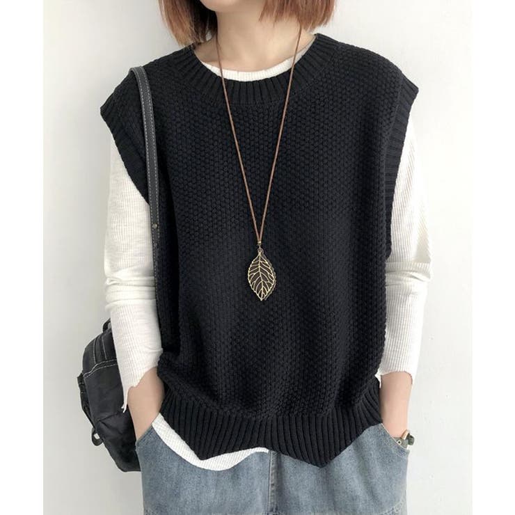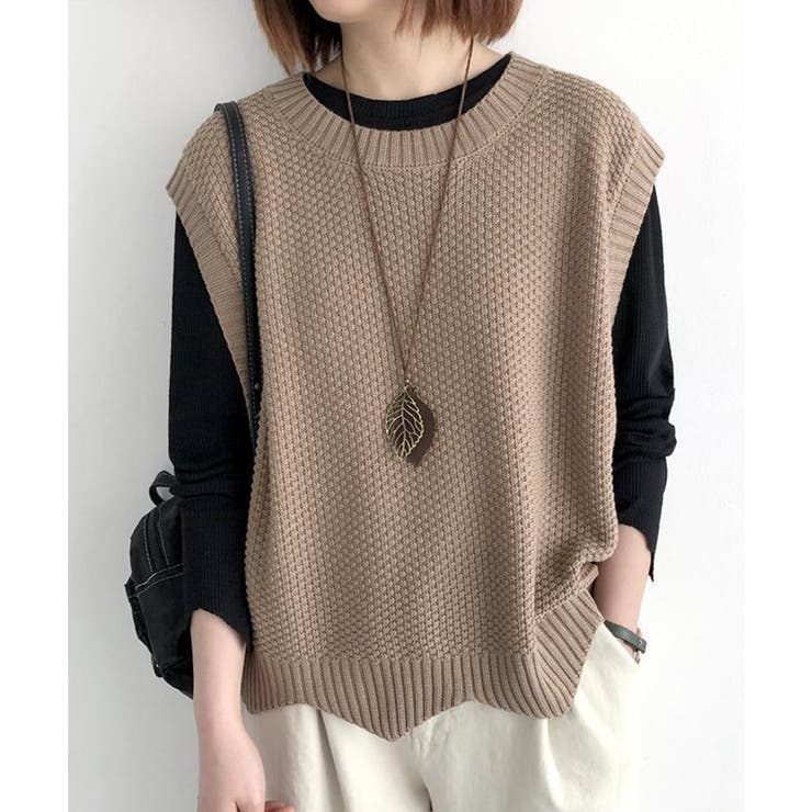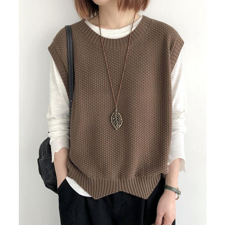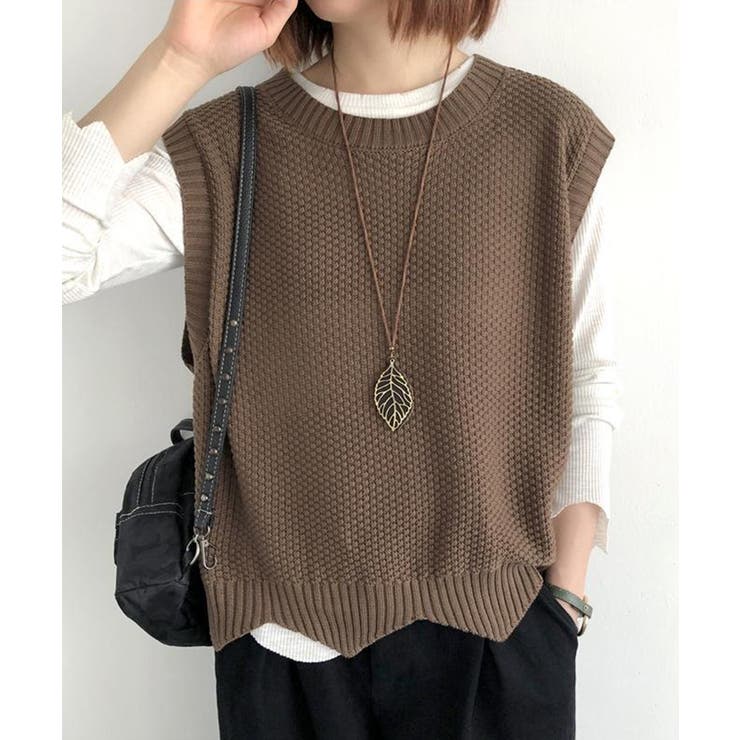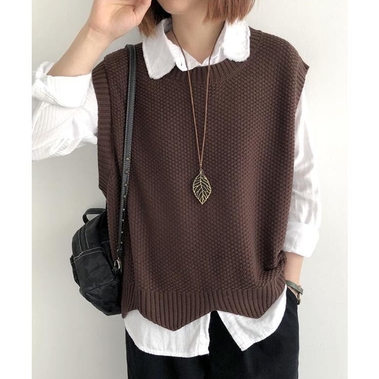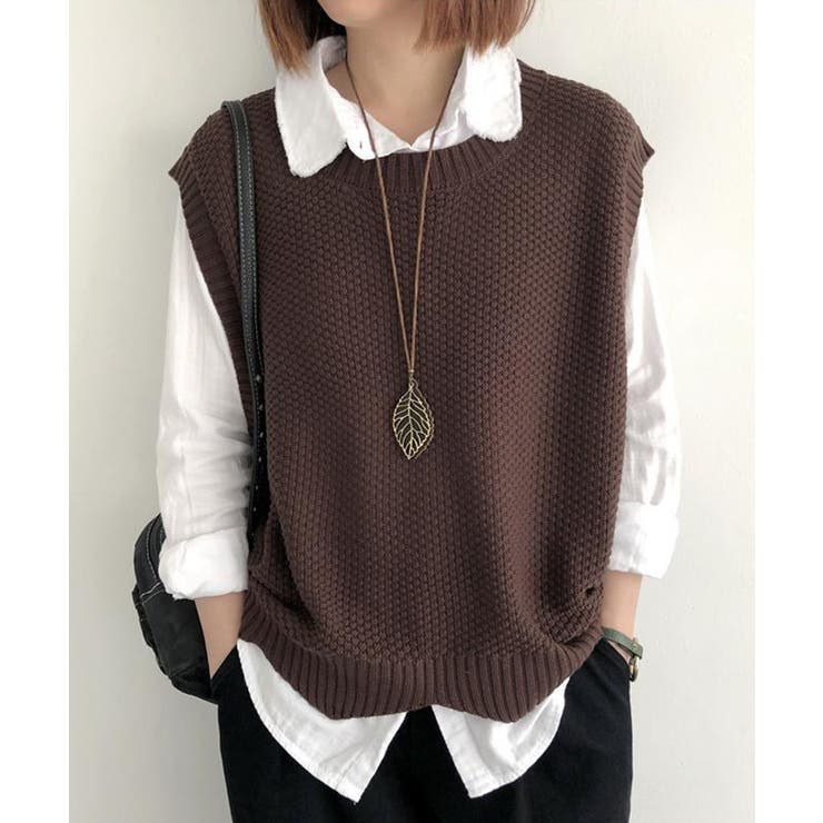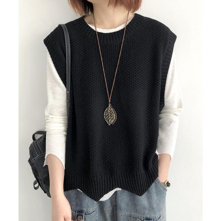 SEU 裾レース編みスカラップベスト ニットベスト レディース レイヤード ゆったり 韓国ファッション【SHOPLIST限定 新作 春 夏 秋 冬】 トップス