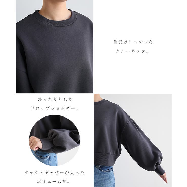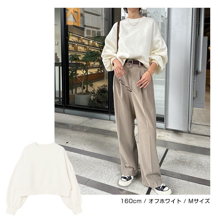 【6/11 1:59まで 10%OFFクーポン】andme 裏起毛 ショート丈 ボリューム スウェット トップス レディース スウェットトップス トレーナー 長袖 プルオーバー オーバーサイズ 体型カバー ゆったり ボリューム袖 カジュアル トレンド 防