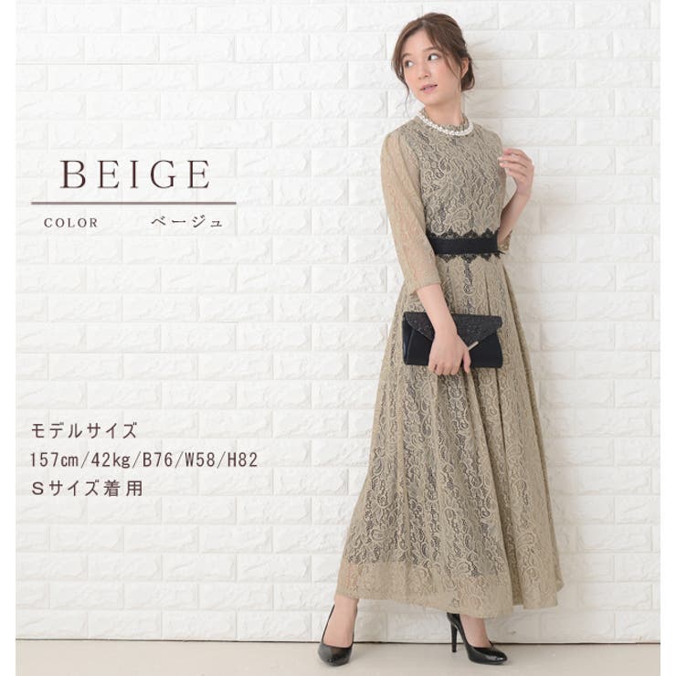 【2/10 1:59まで 10%OFFクーポン】パーティードレス ロングワンピース 総レース シースルー袖 長袖 ロング丈 結婚式 披露宴 二次会 お呼ばれ ベージュ 黒 ブラックグレー 紺 ネイビー 20代 30代 40代 レディース フォーマル 春