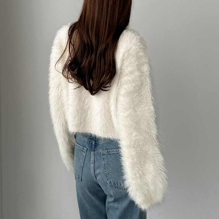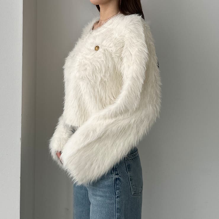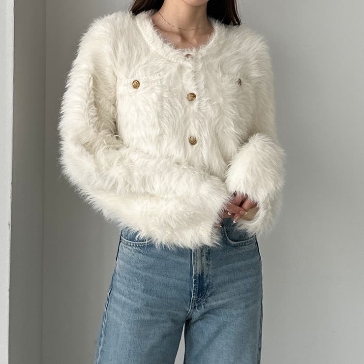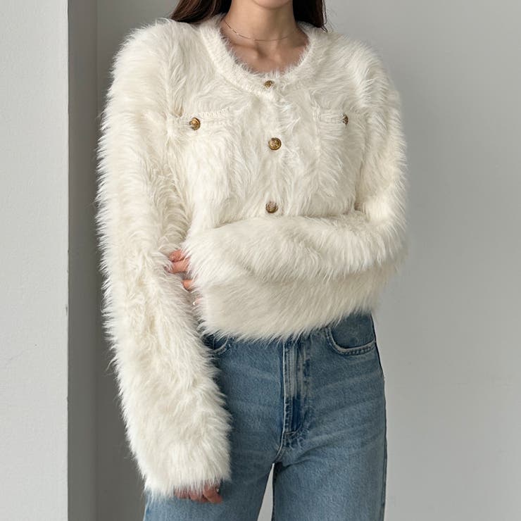 Louere ゴールドボタンシャギーニットカーディガン