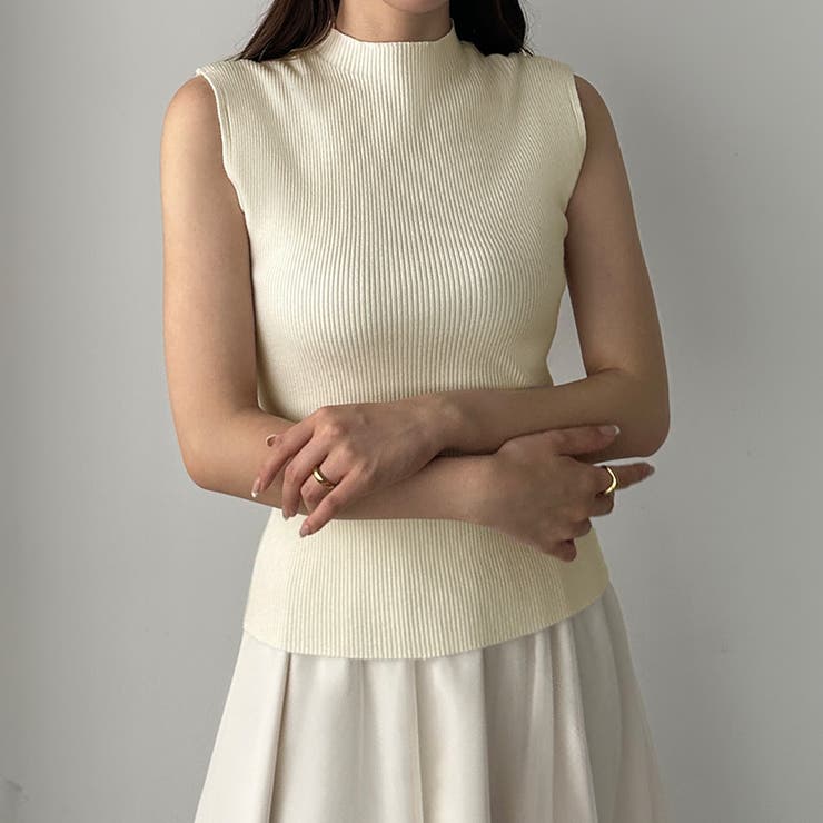 Louere ボトルネックノースリーブリブニット