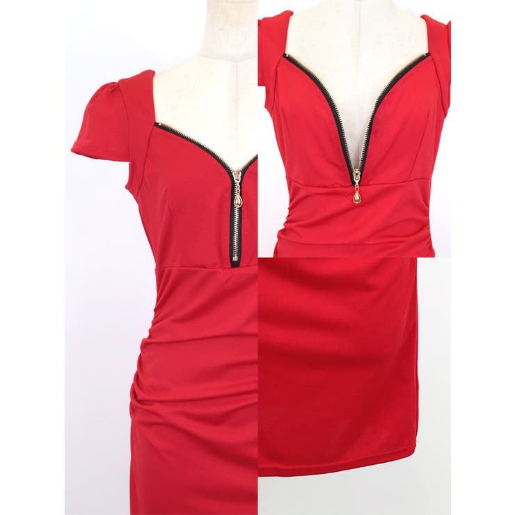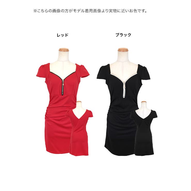 【6/11 1:59まで 10%OFFクーポン】my minette ハーフジップワンカラータイトミニドレス セクシードレス 袖あり 半袖 バストカット カットアウト キャバドレス キャバ ドレス M-Lサイズ レッド ブラック ちぴたん れいたぴ my